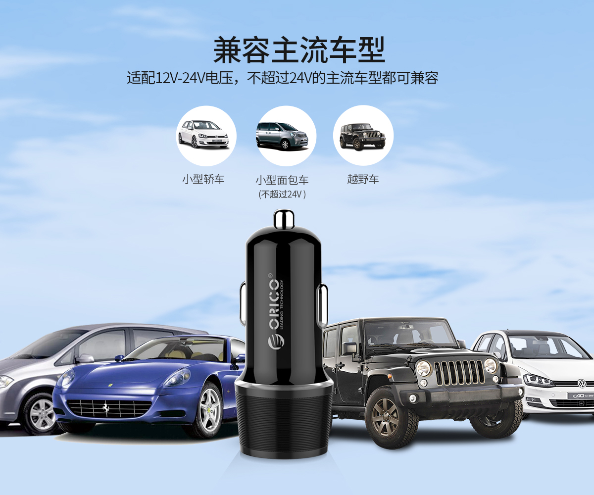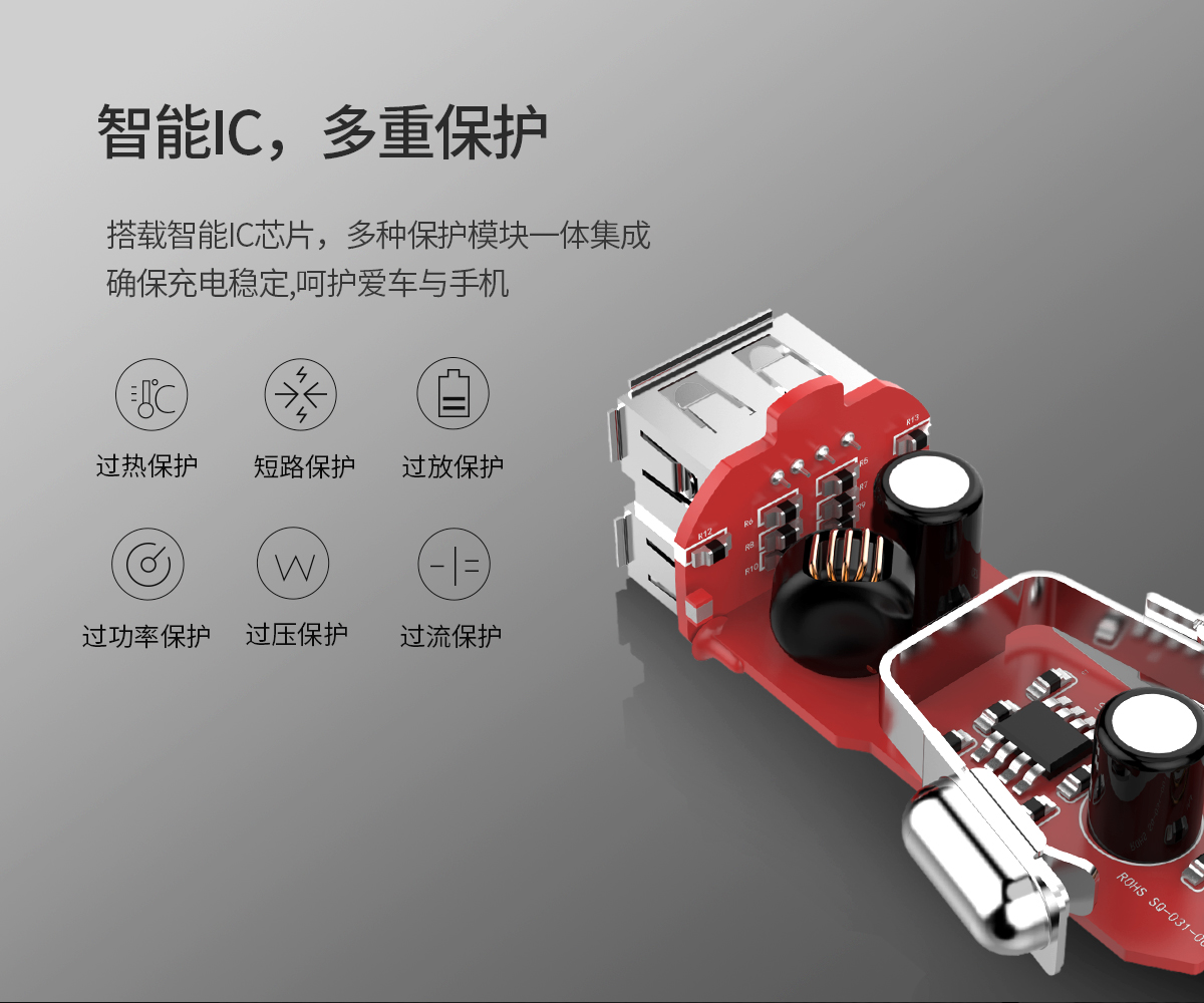 車載點煙口一拖二USB口抗干擾多重保護充電器