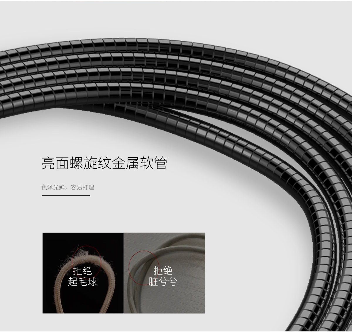采用防纏繞金屬軟管線身,不打結(jié),不纏繞,容易打理