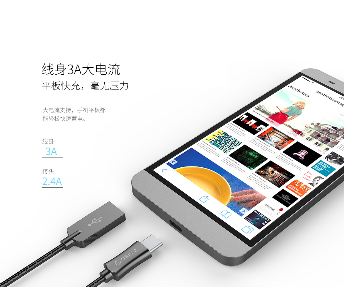 Type-C數(shù)據(jù)線 2.4A快充電流 不銹鋼編制線身 耐用不斷線