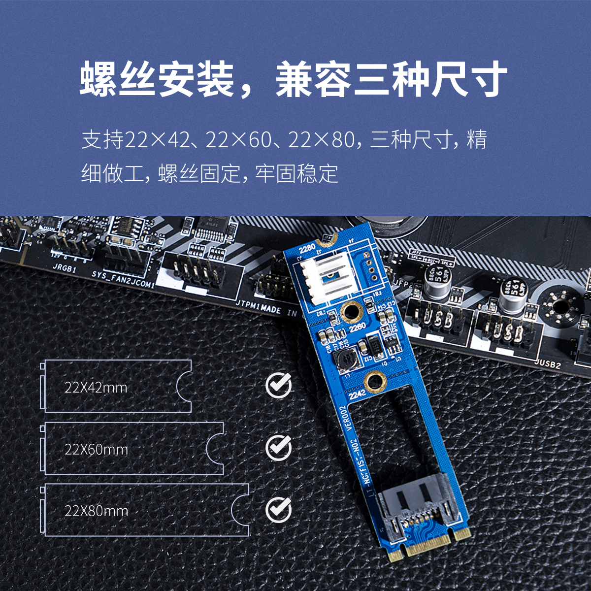 M.2 NGFF接口,支持SATA協(xié)議,支持22×42,22×60,22×80,三種尺寸,雙面PCB板,噴油防潮,多系統(tǒng)兼容