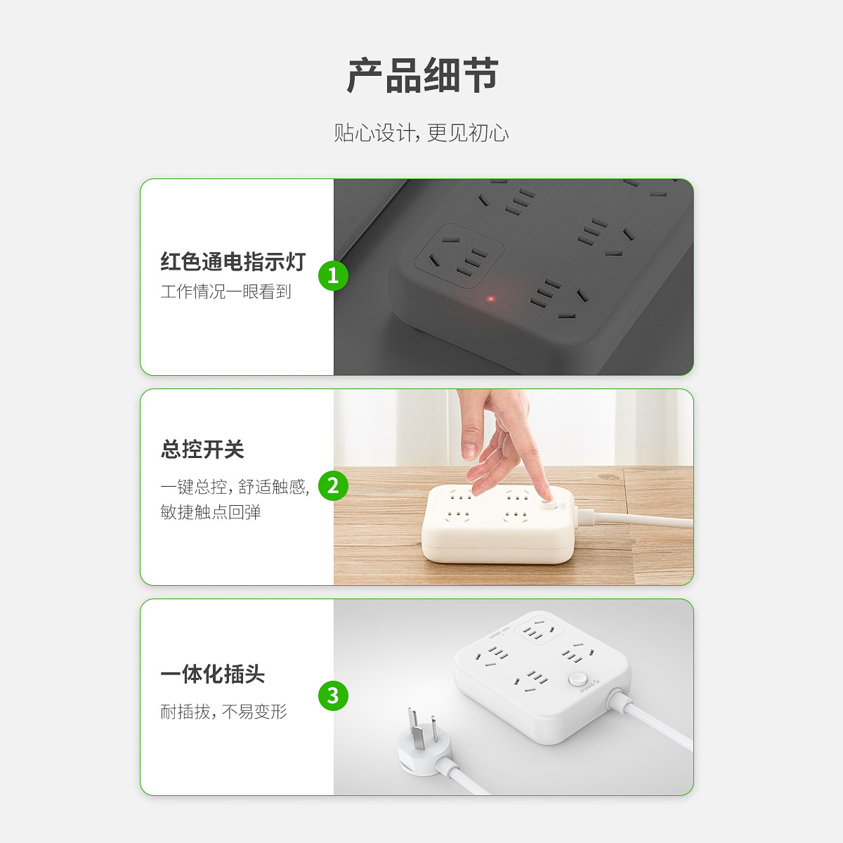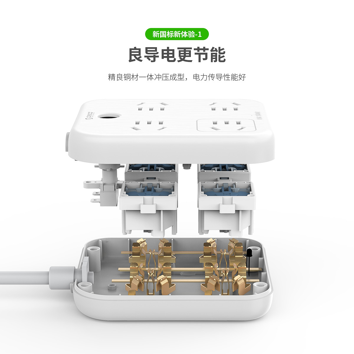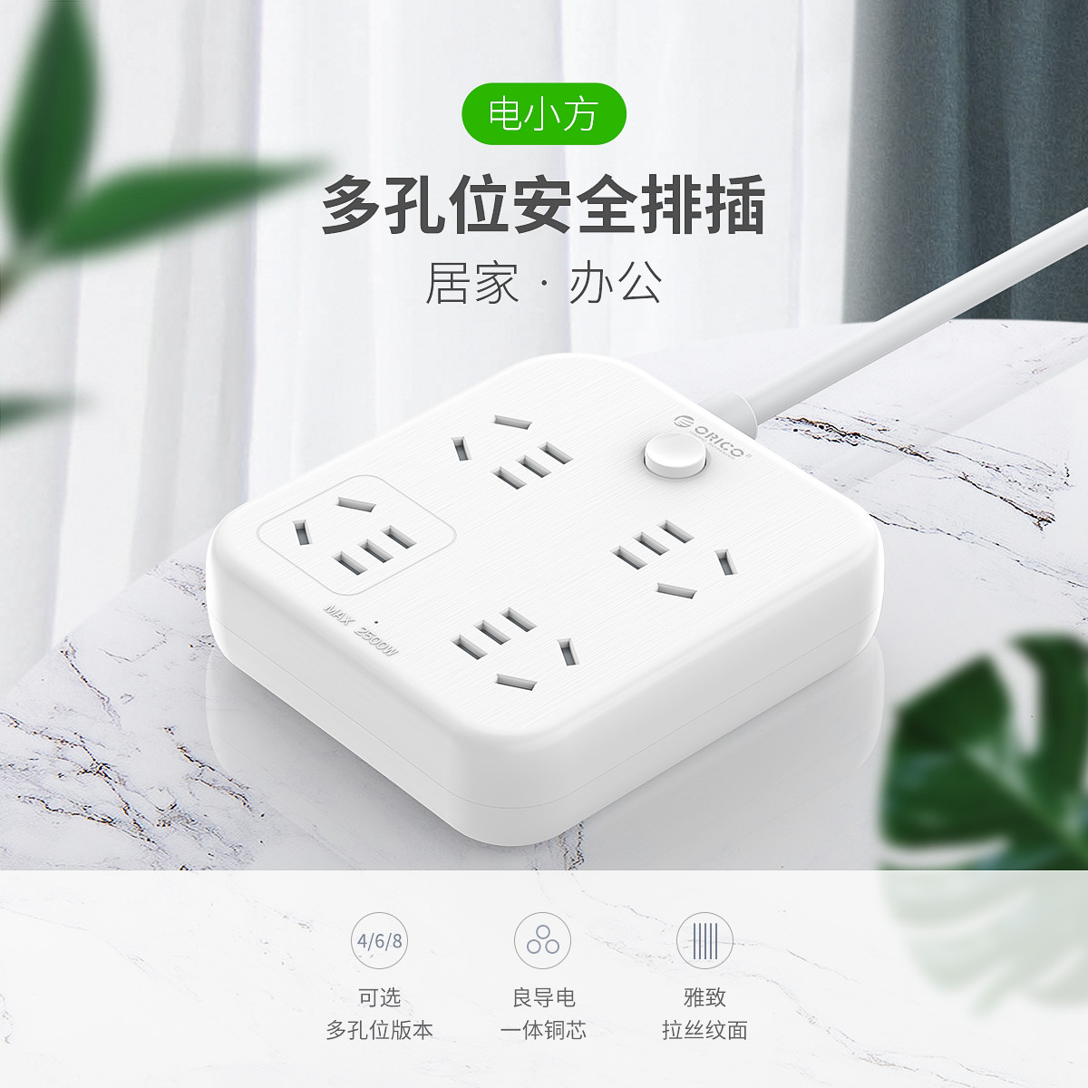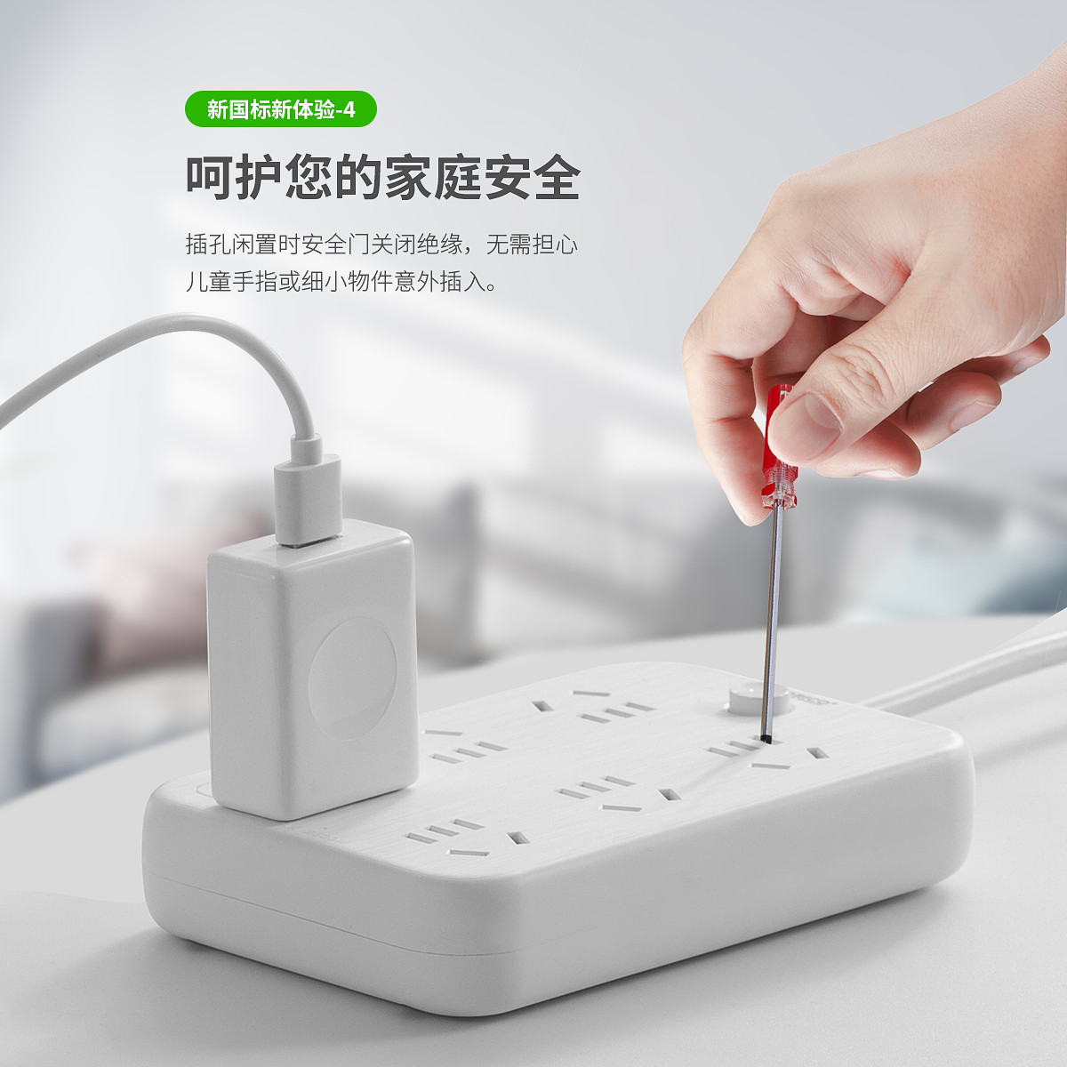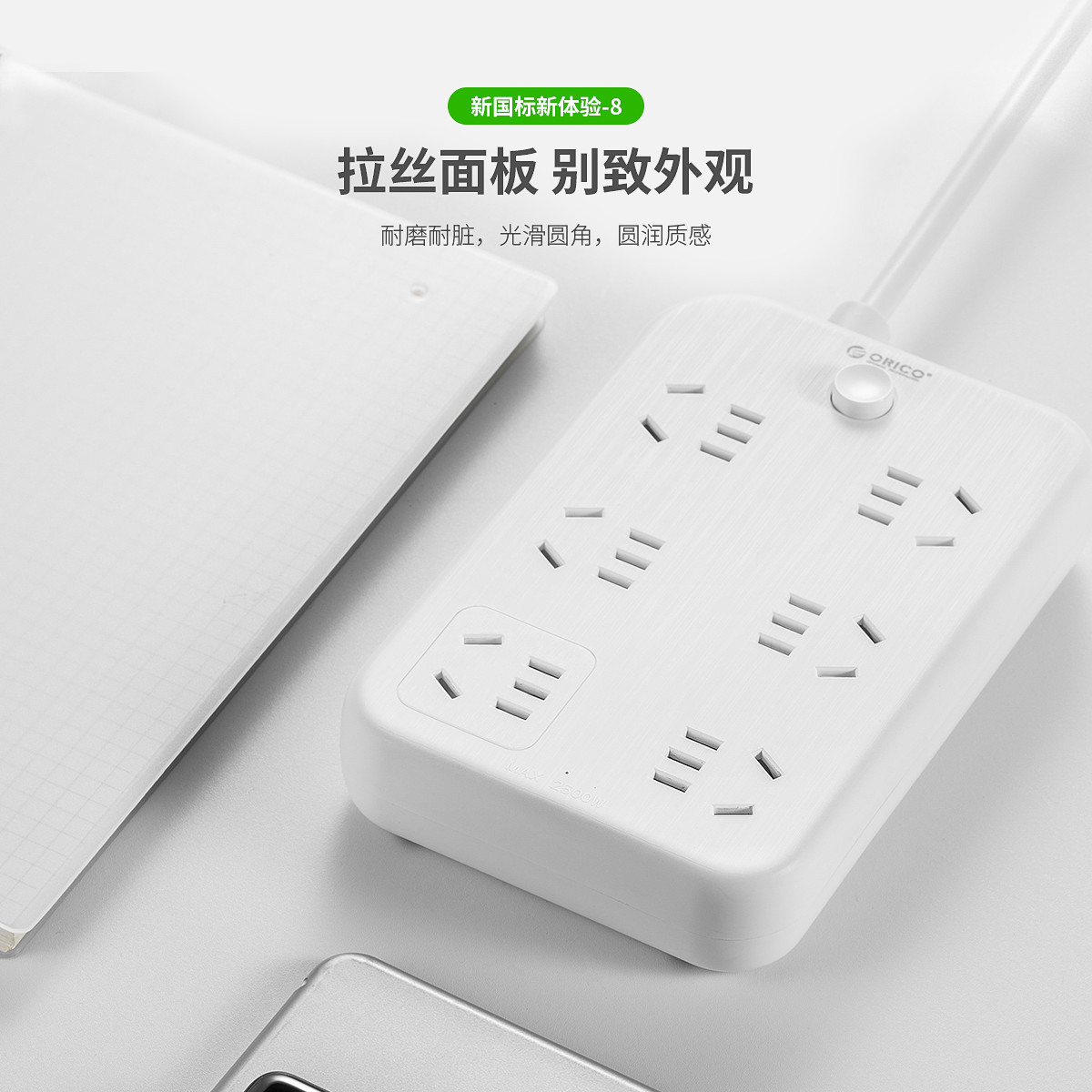 多孔位安全排插,一體沖壓成型,5000次插拔不松動,手機無需充電頭,拉絲面板,3年質保