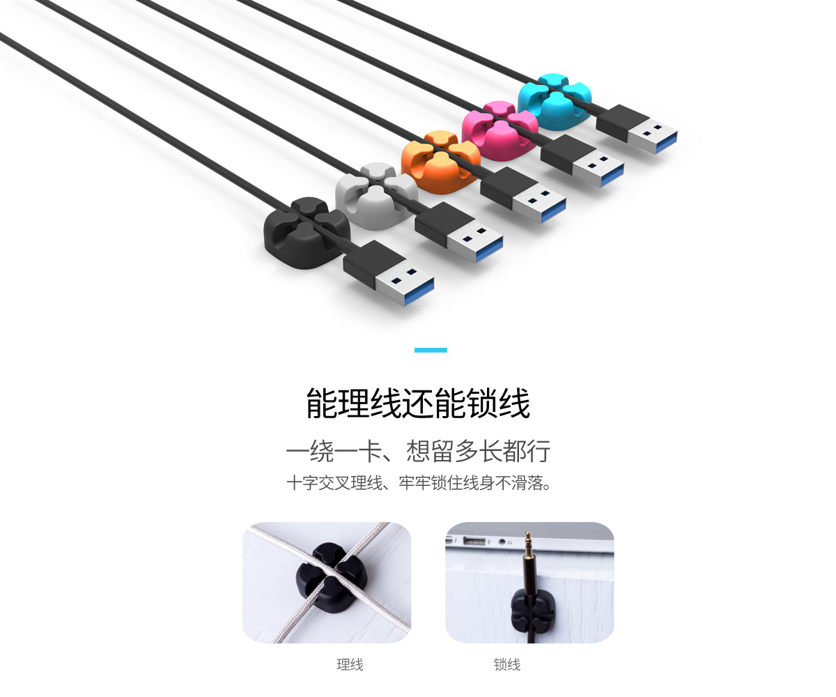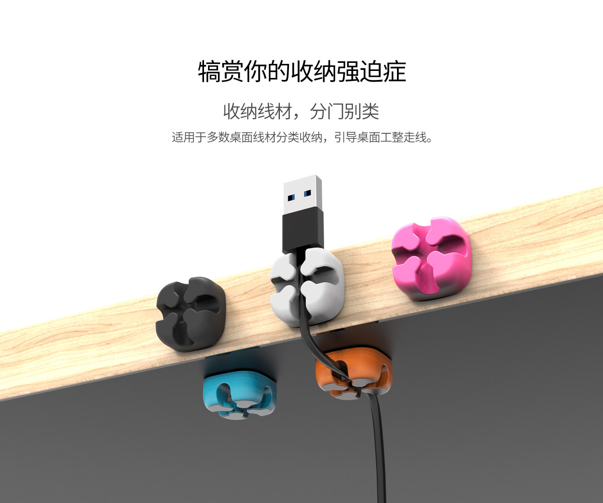 桌面理線器,十字卡槽,軟質硅膠,3M強力雙面膠,五色可選