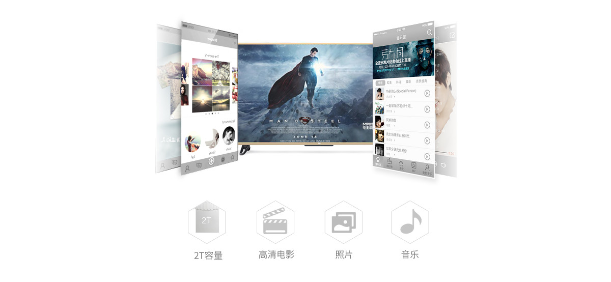 支持2TB硬盤海量存儲(chǔ),電影、音樂(lè)、照片無(wú)憂存。