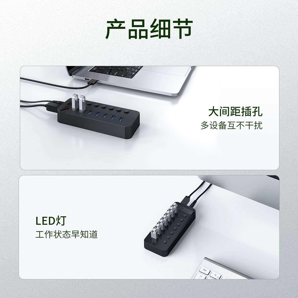 工業級USB3.0,塑料條紋分控,5Gbps,2.4A電流,黑白雙色