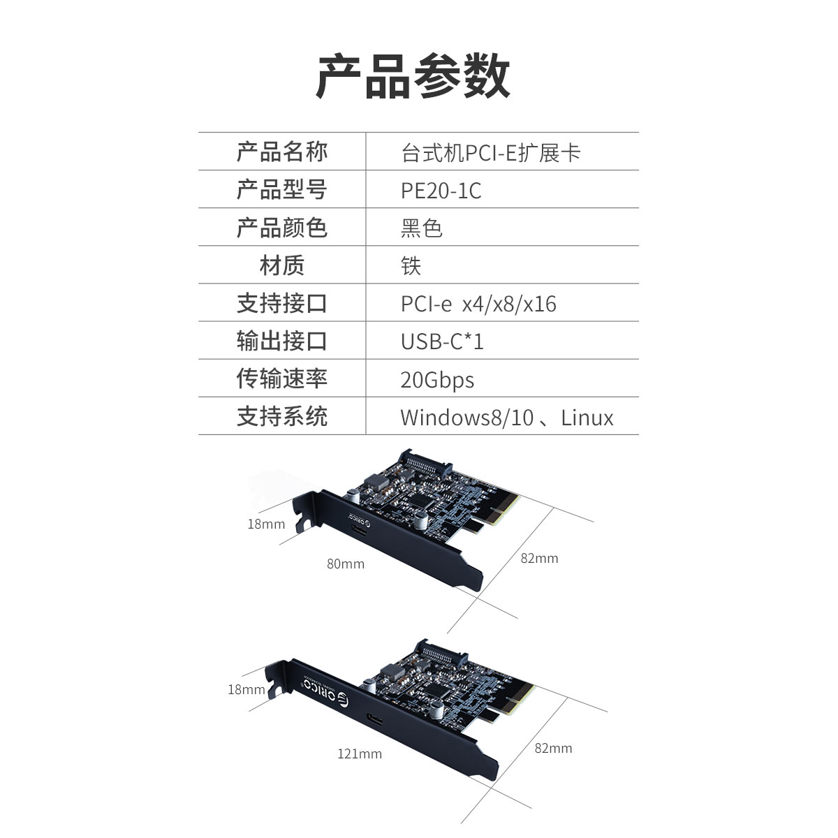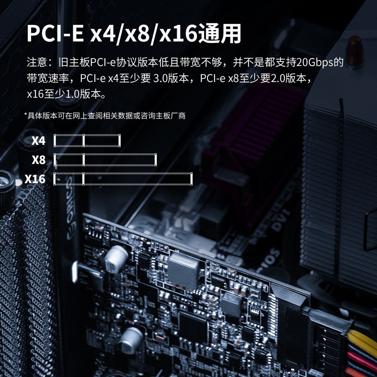 20Gbps PCI-E轉(zhuǎn)Type-C擴展卡,USB3.2 Gen2×2雙通道接口