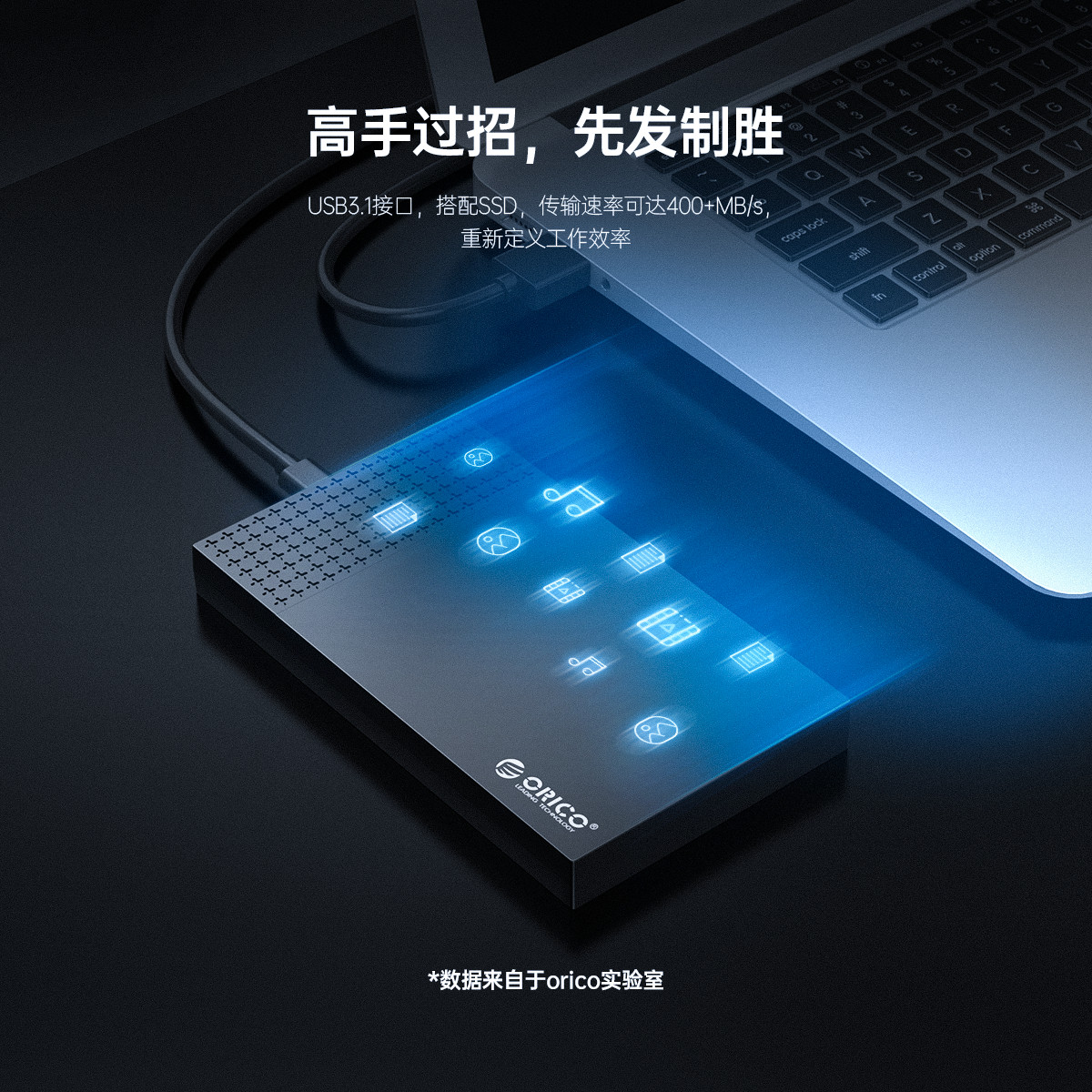 USB3.1 2.5英寸機械/固態硬盤通用,支持4TB大容量擴展,內置防震棉,外殼由品質ABS材質打造,免工具設計