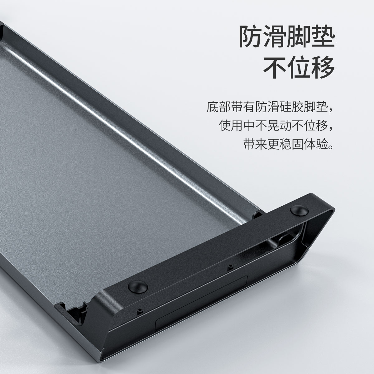 面板采用品質(zhì)鋁合金打造,高硬度耐耗損,可輕松承載30斤重物,底部帶有防滑硅膠腳墊,