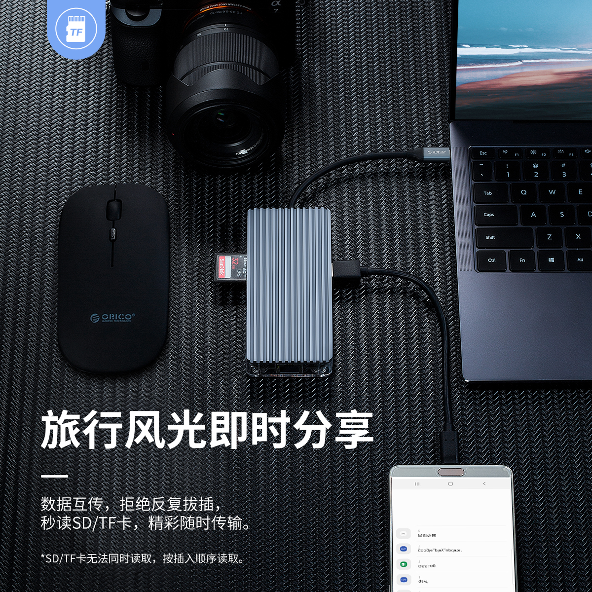 透明鋁合金,4K30HZ,秒讀SD/TF卡,精彩隨時傳輸。