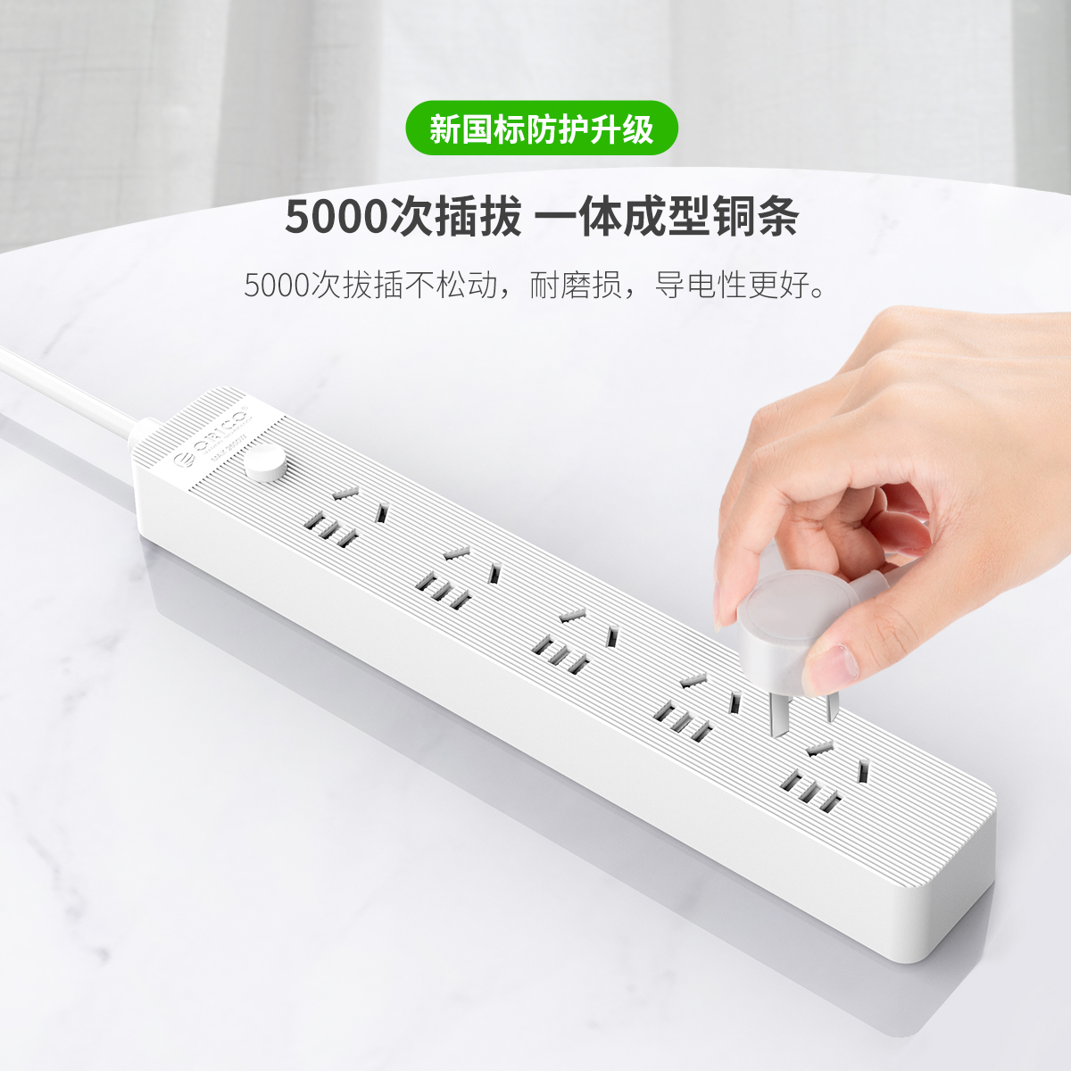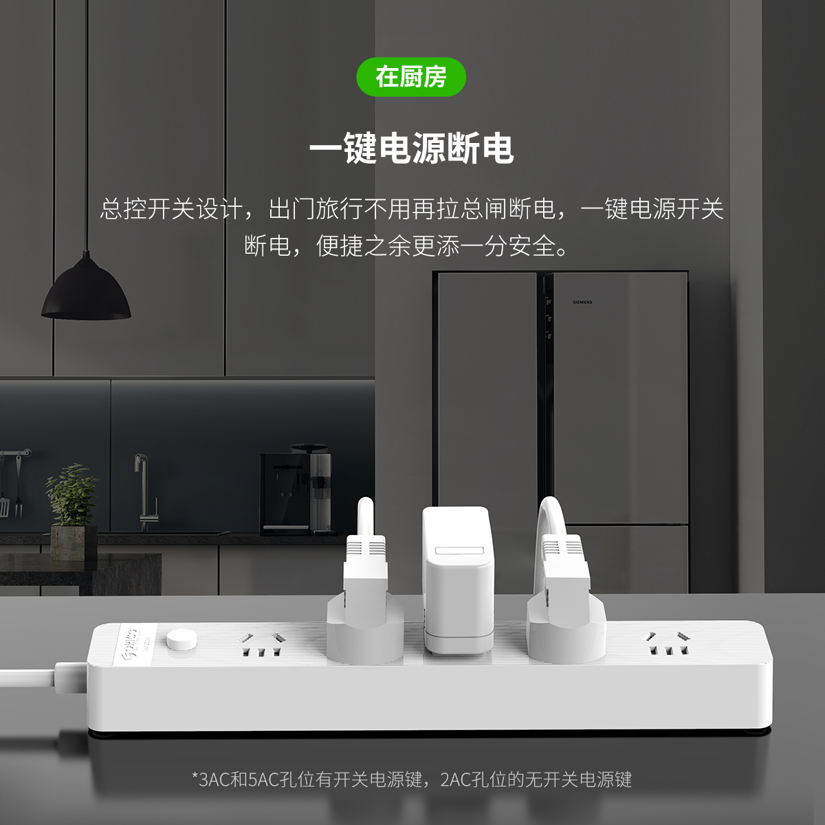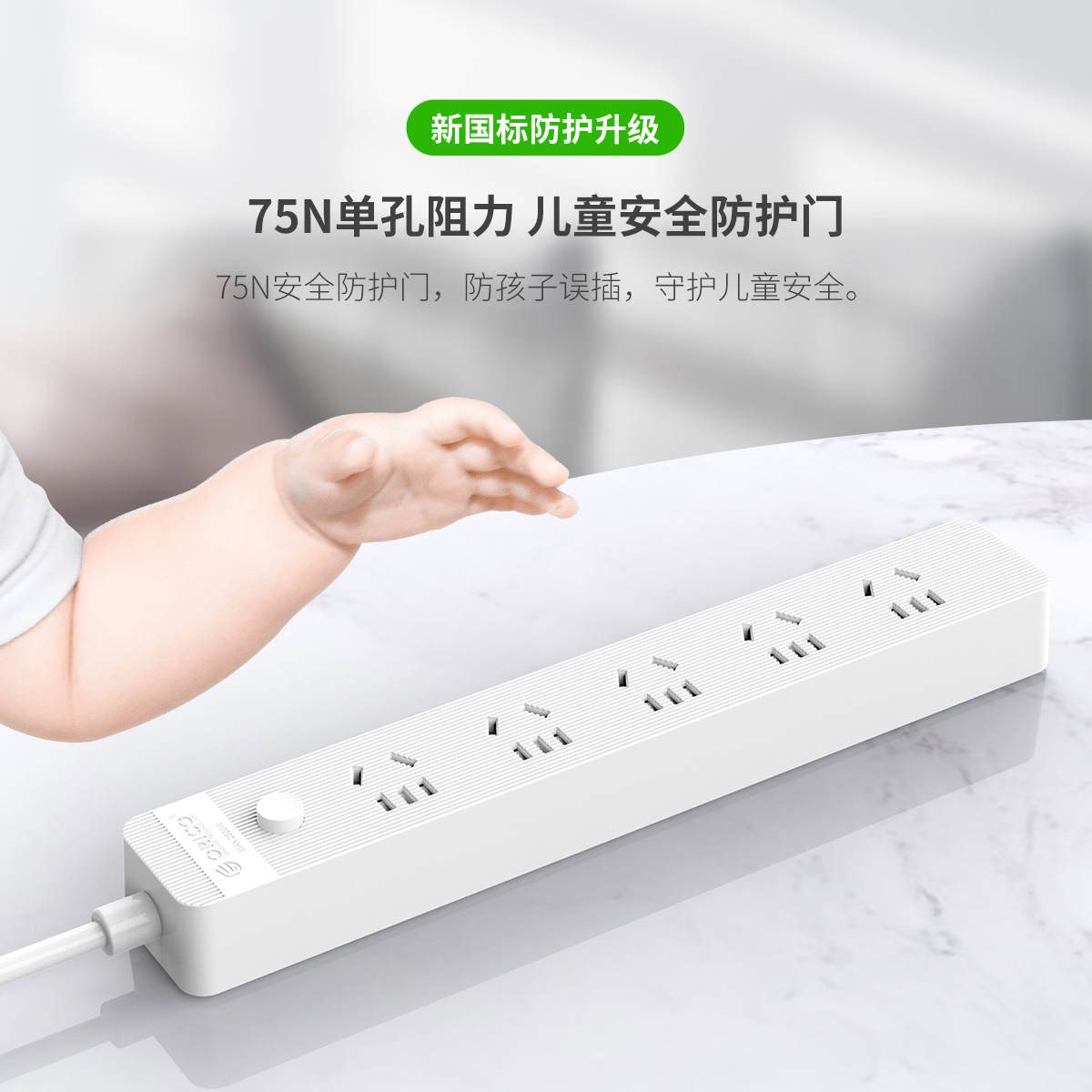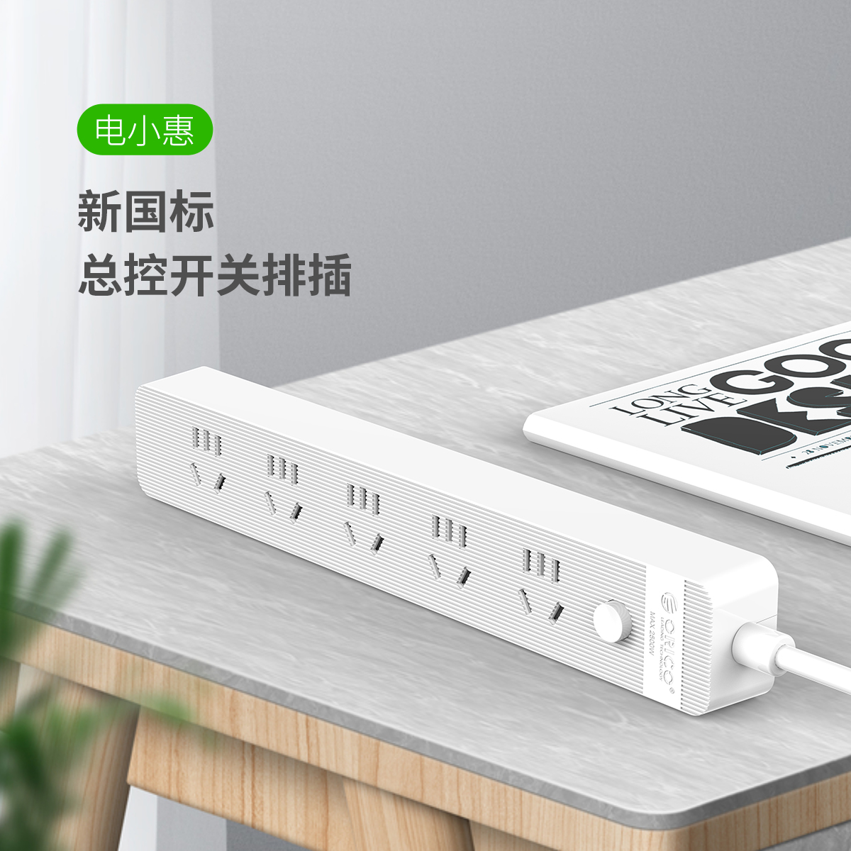 總控開關排插,簡約條紋,一鍵電源斷電,安全用電方便節能,三芯一體式銅芯線