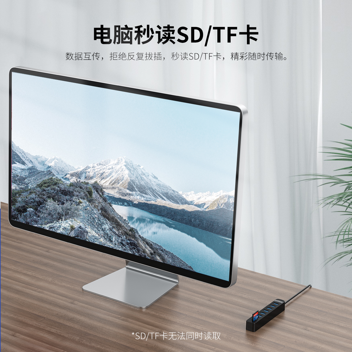 支持同時擴展6個USB,設備又能讀取SD/TF卡,5Gbps傳輸速率,支持2T大容量存儲卡、移動硬盤使用