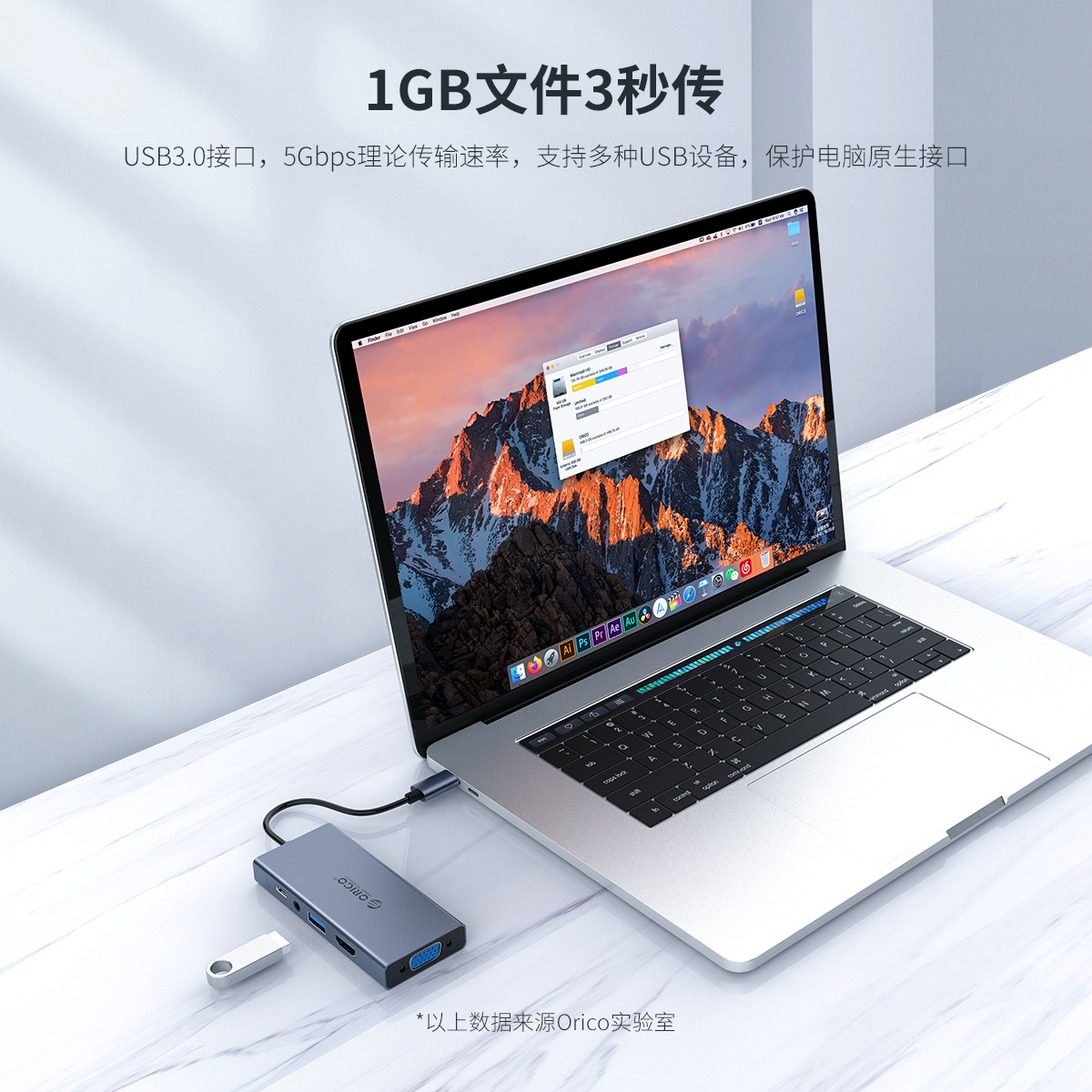 五口擴(kuò)展,USB Type-C口支持PD2.0,HDMI支持4K 30HZ視頻傳輸,HDMI+VGA雙視頻接口,標(biāo)準(zhǔn)的DC3.5MM音頻接口,內(nèi)置數(shù)字音頻編解碼器