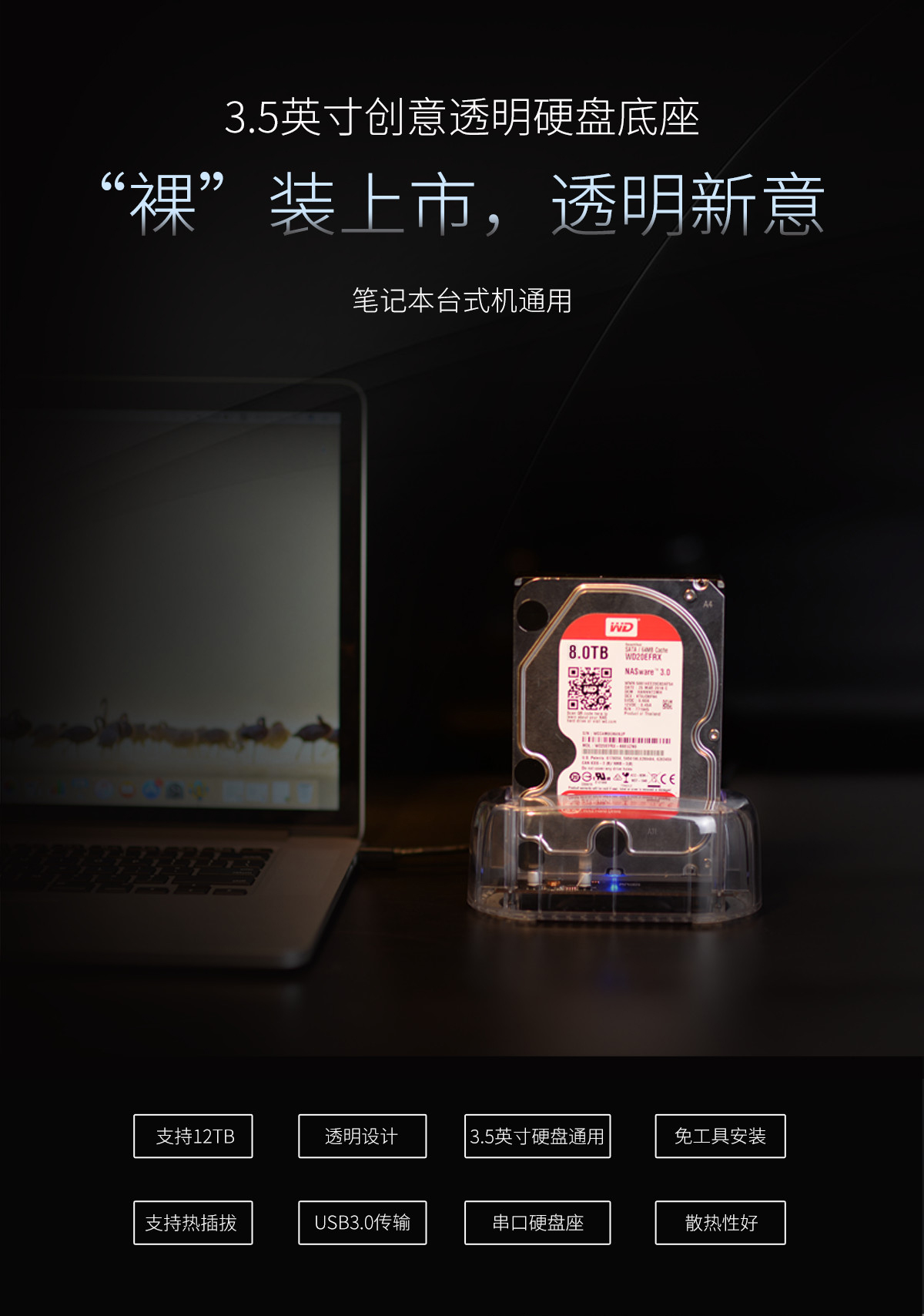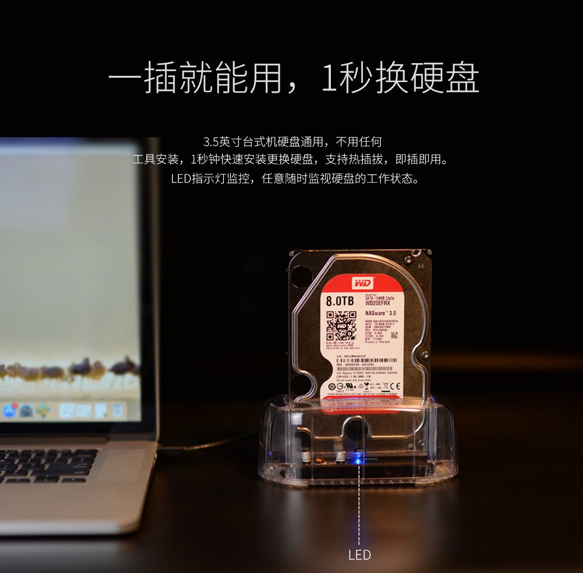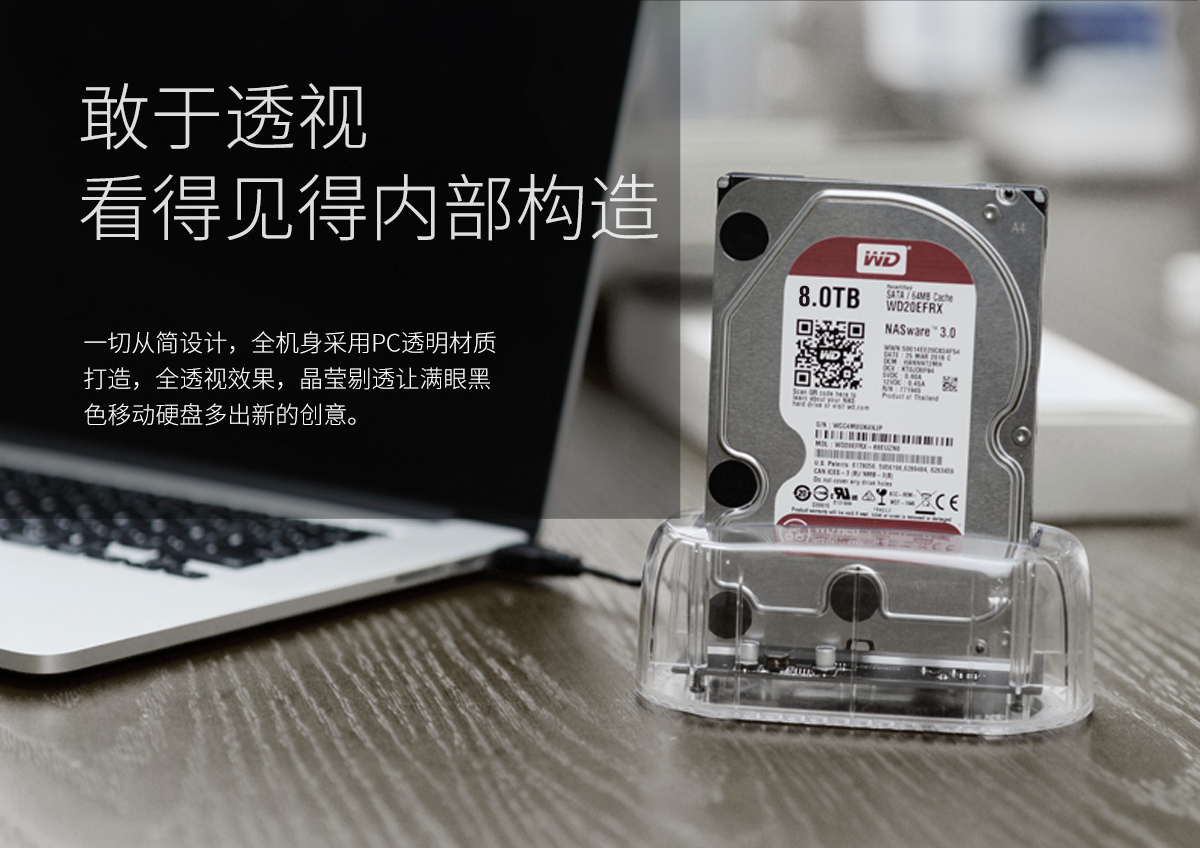 透明硬盤座,通用所有SATA串口硬盤/筆記本臺式機,免工具安裝