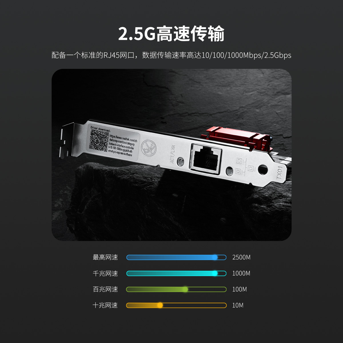 2.5G內置網卡,高速穩定上網,擺脫延遲不卡頓,采用風琴導熱片散熱設計,快速散熱,需在Orico官網下載驅動安裝