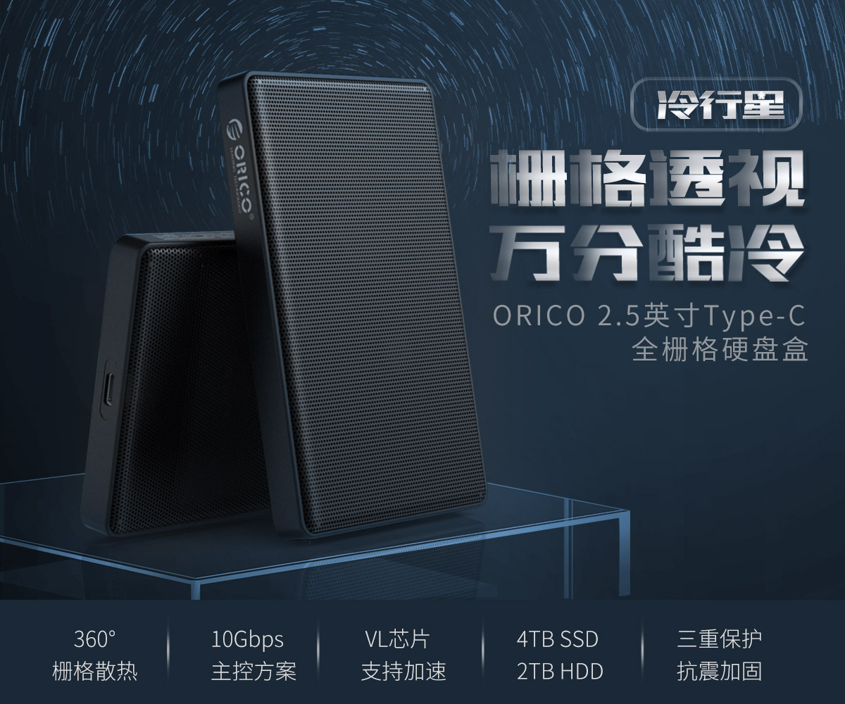 2.5英寸Type-C金屬全柵格硬盤盒