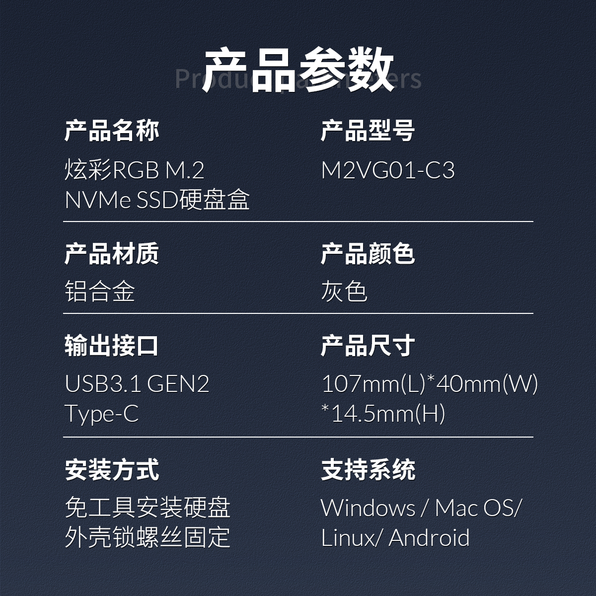 炫彩RGB M.2 NVMe SSD硬盤盒