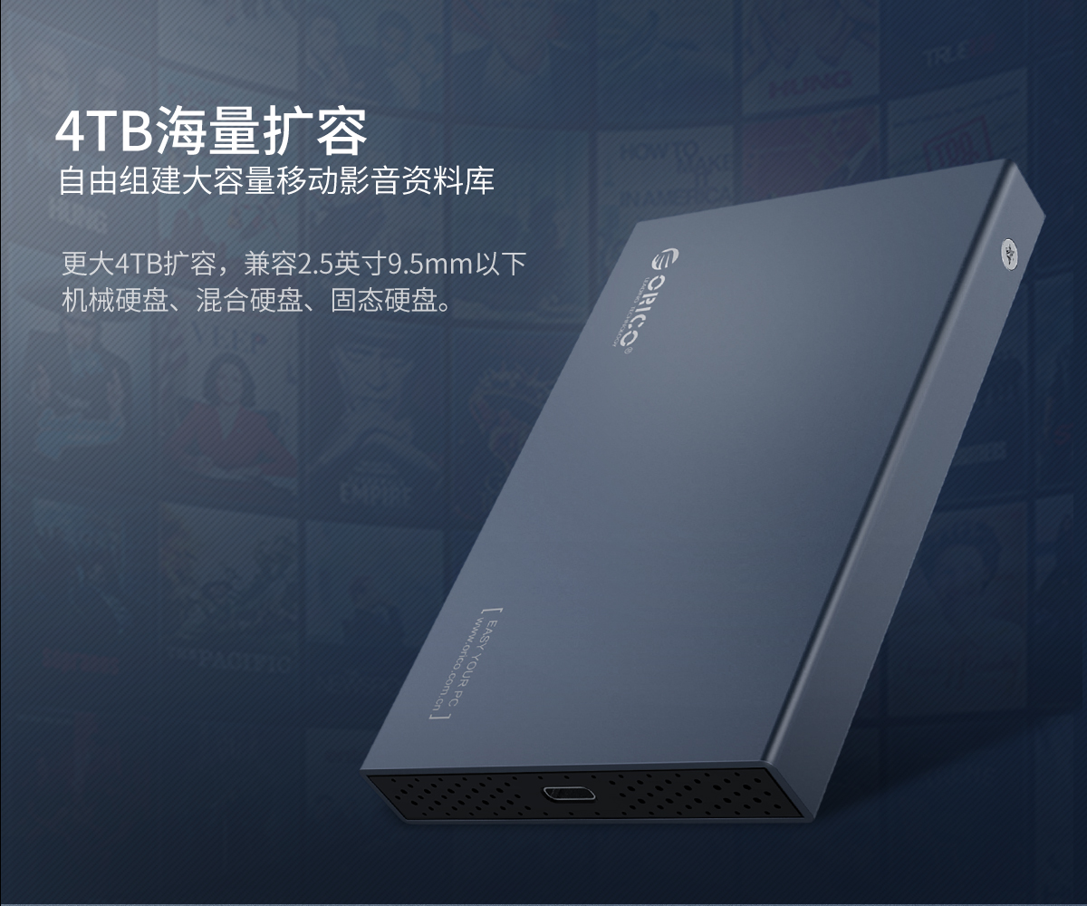 2.5英寸鋁合金Type-C移動硬盤盒,4TB大容量