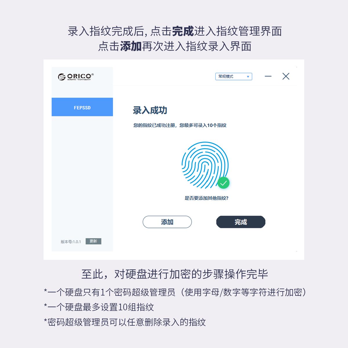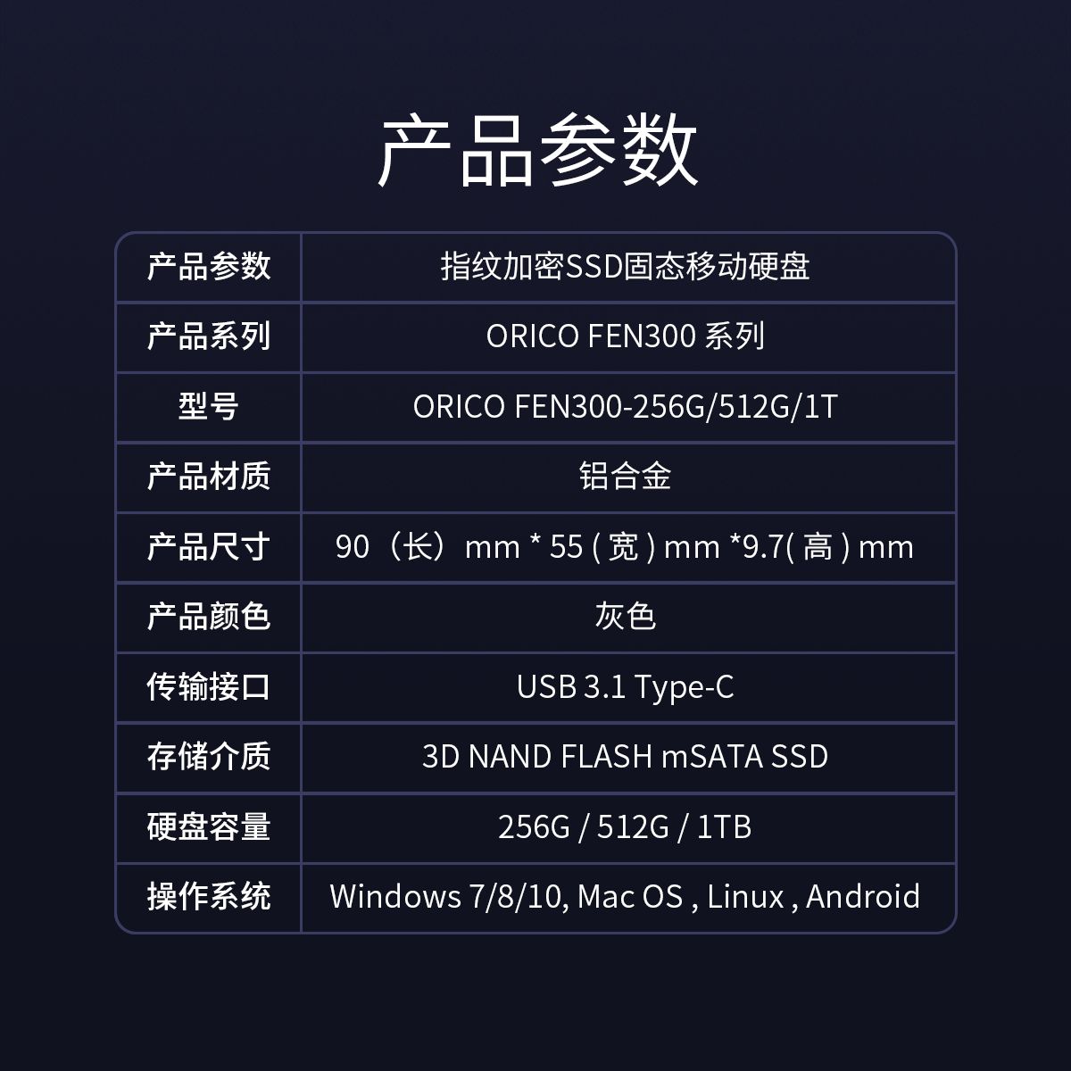 ORICO FEN300指紋加密移動固態(tài)硬盤256GB/512GB/1TB USB3.1 Type-C,450MB/s讀寫