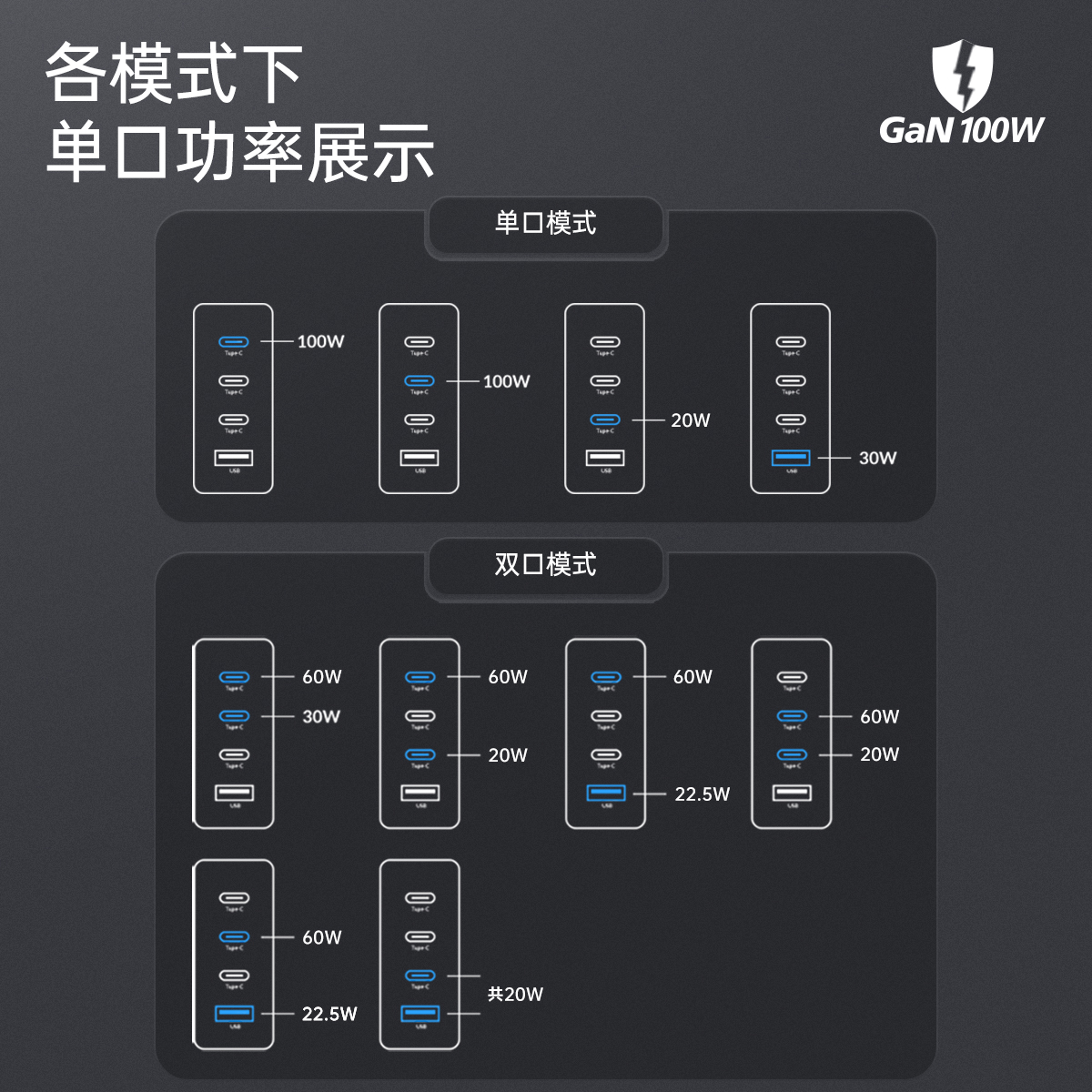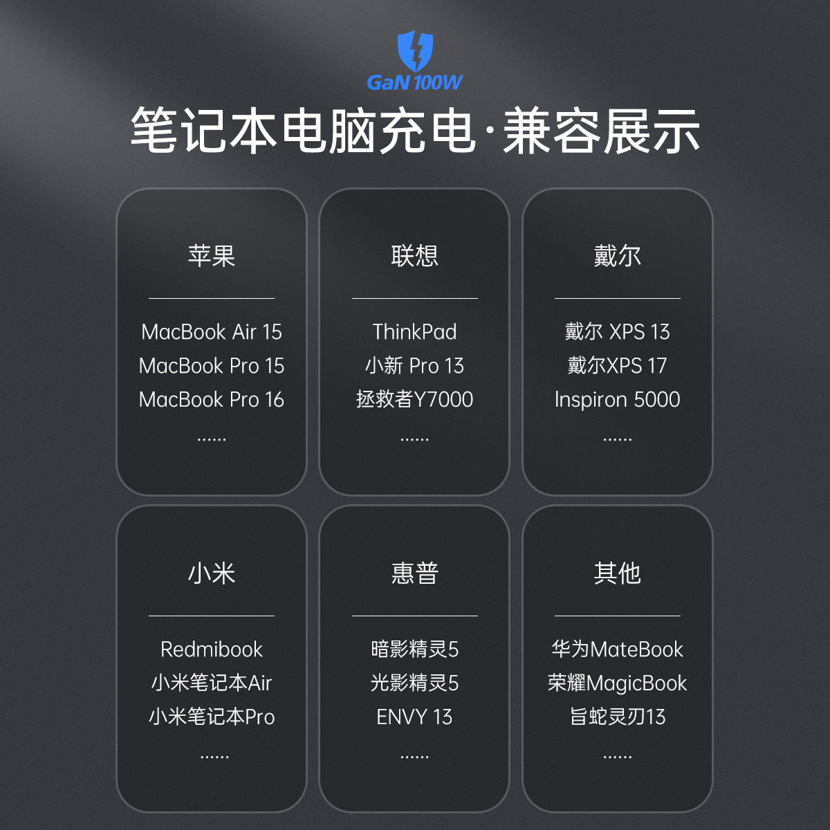 C1 100W PD(5V/3A, 9V/3A, 12V/3A, 15V/3A, 20V/5A,);