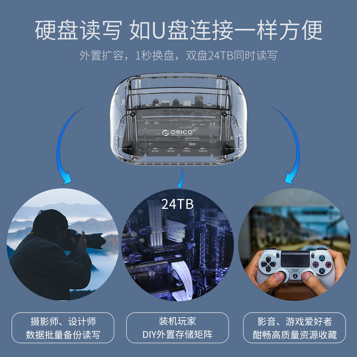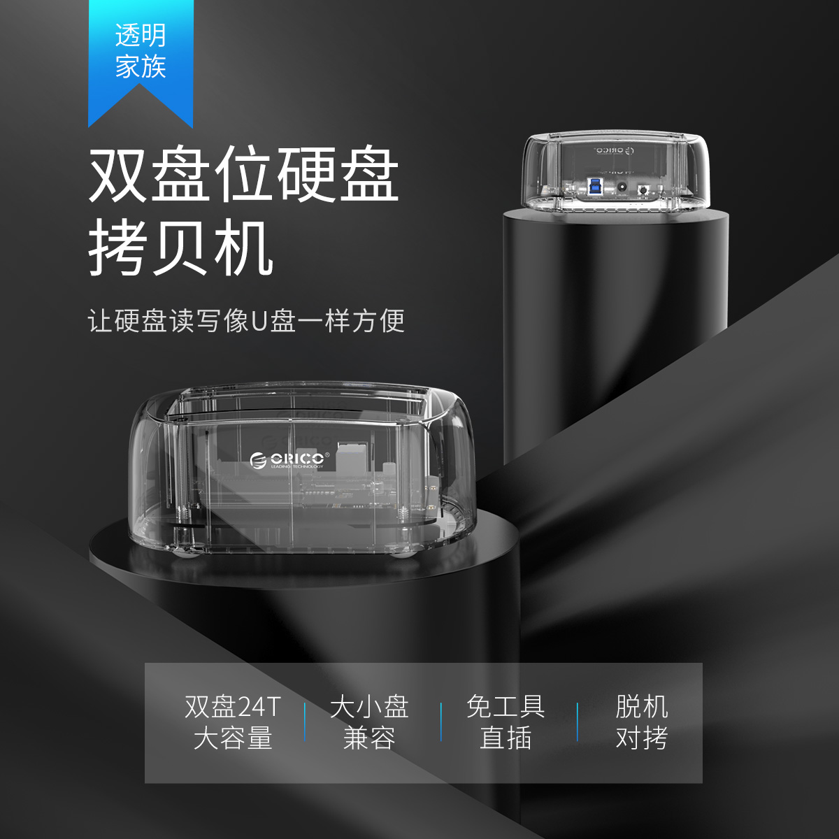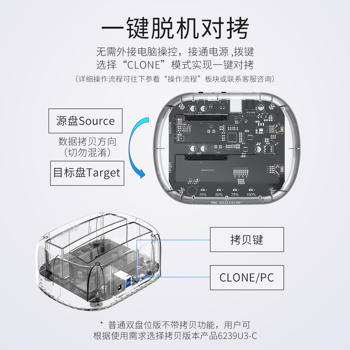 透明系列3.5英寸雙盤位USB3.0脫機拷貝硬盤底座