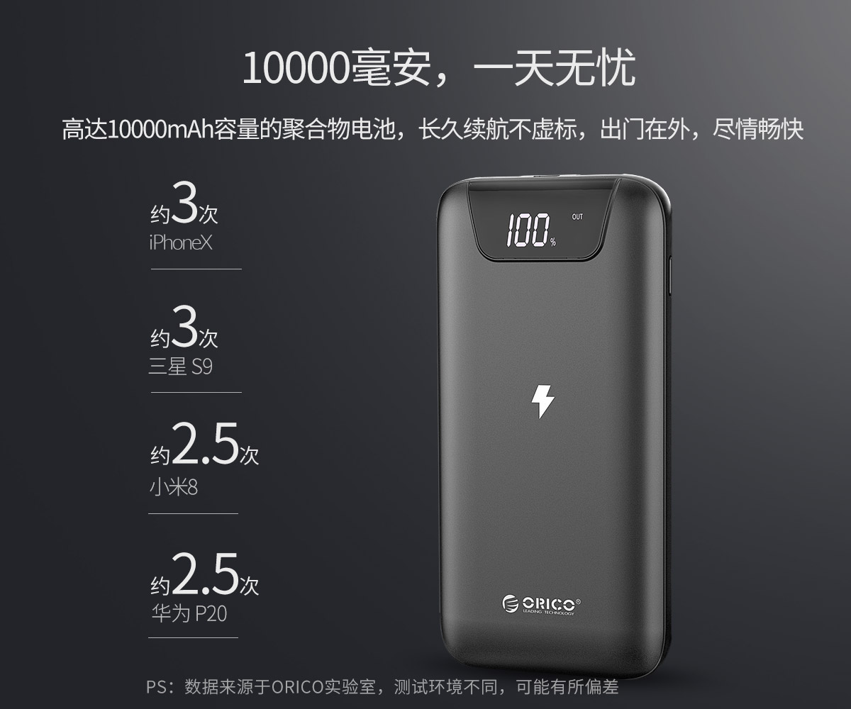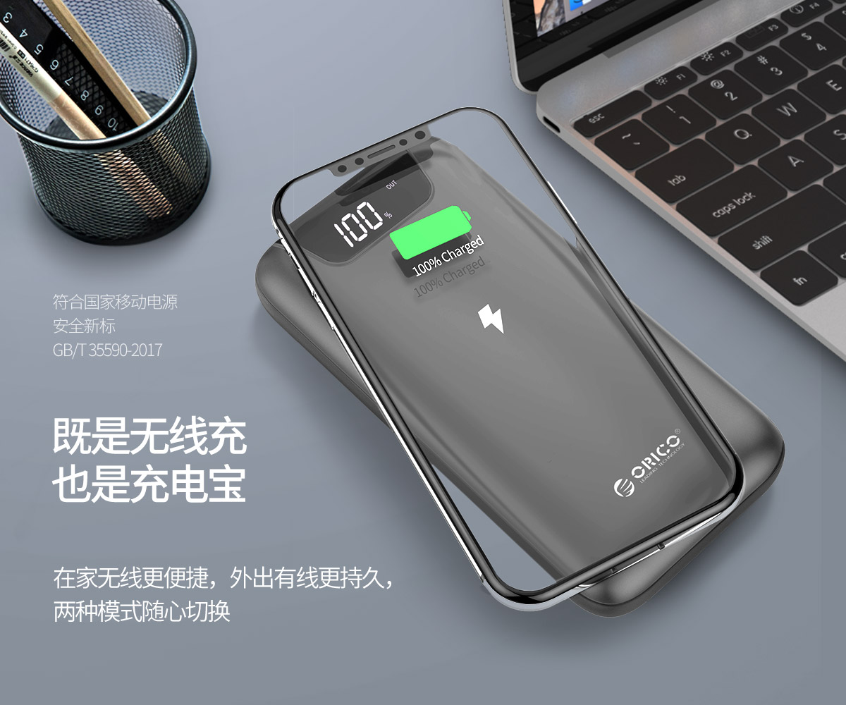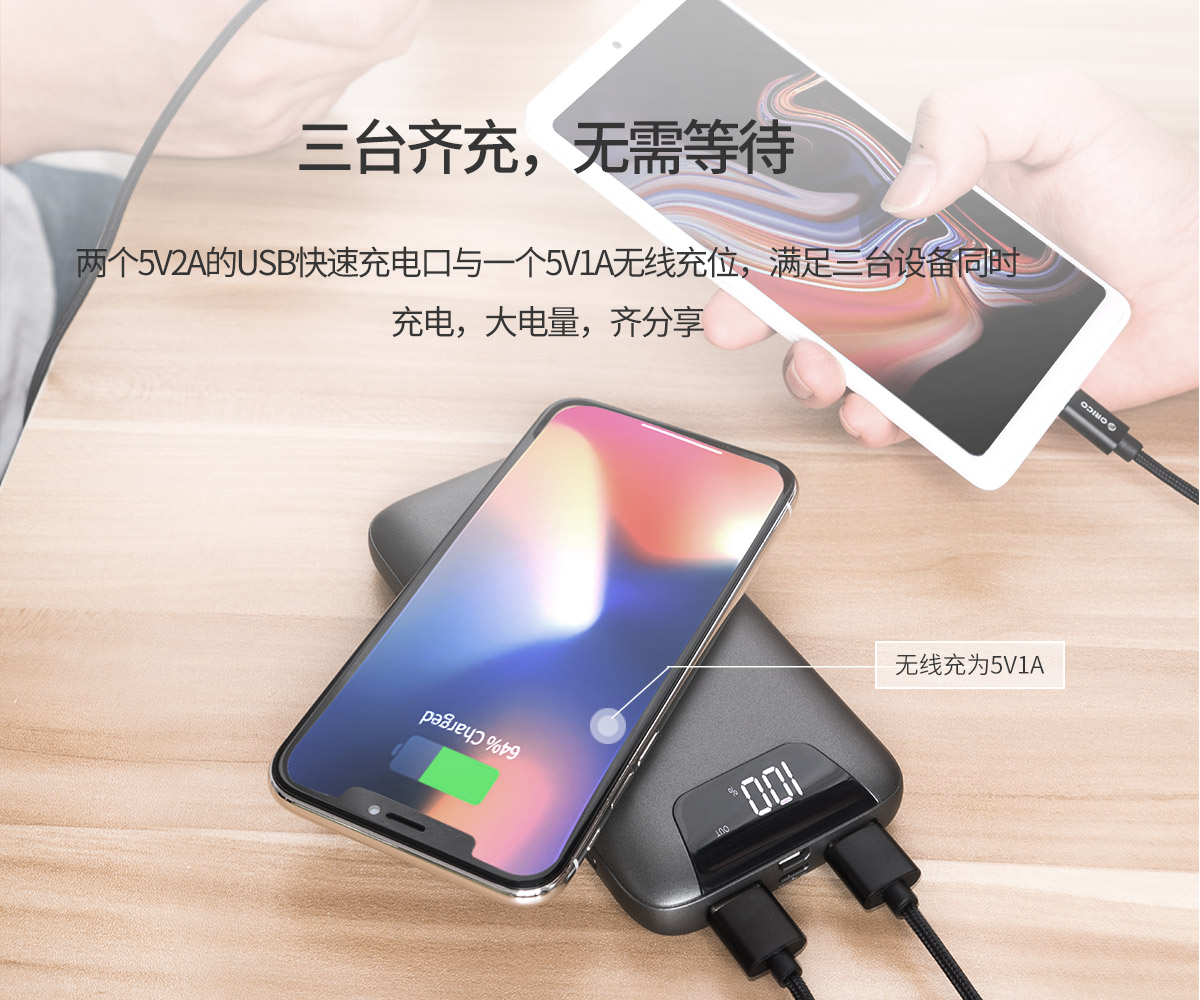 無線充移動電源,10000mAh大容量,三臺設備可以同時充電