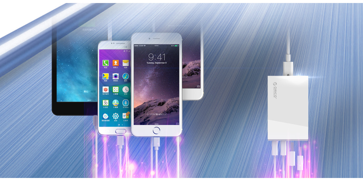 為了實現更智能的充電操作,ORICO QSL采用電流控制和管理模式,配備USB智能充電芯片,可自動識別充電設備,智能匹配合適充電方案。無論您是平板、手機還是移動電源、Ipod、MP4等各種5V設備,Supercharge口都可以自動偵測,給予設備更快的充電電流。