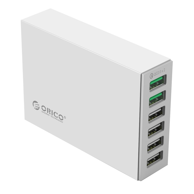 支持6臺設備同時充電,解決多人多設備充電問題,其中2個端口支持QC2.0(5V2.4A,9V2A,12V1.5A)輸出,4個端口支持5V2.4A大電流輸出,輸出總功率為50W,一臺設備幫您打造您的桌面充電站。