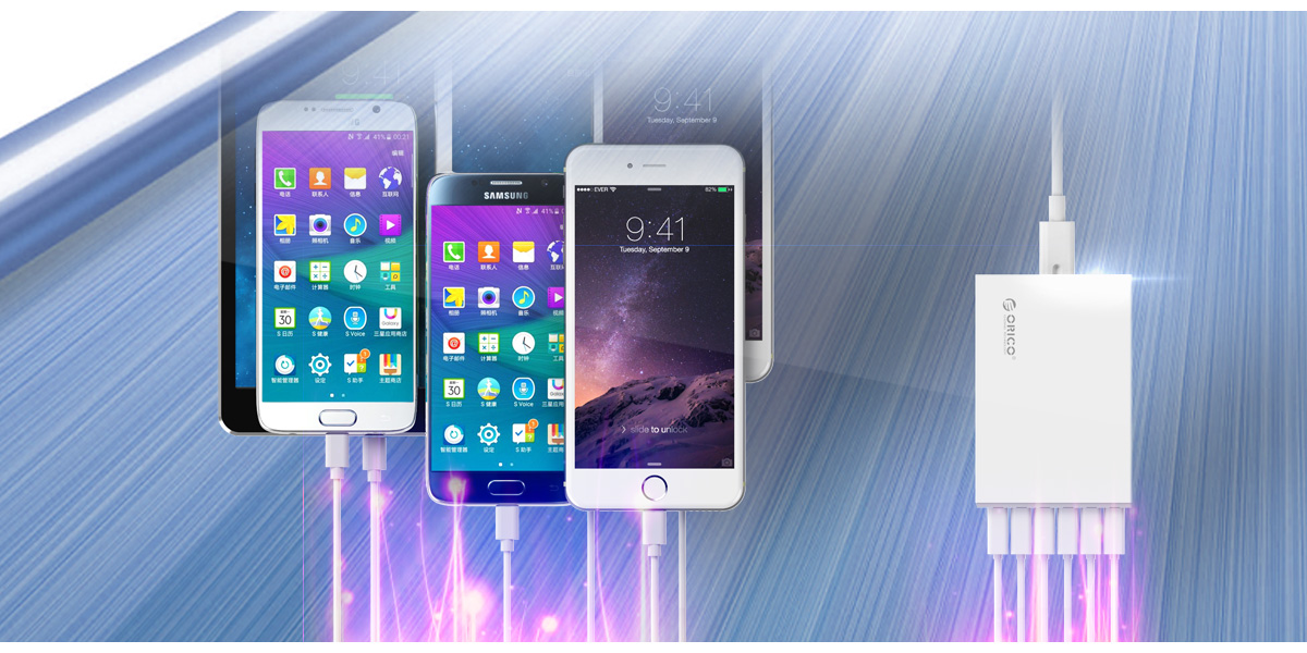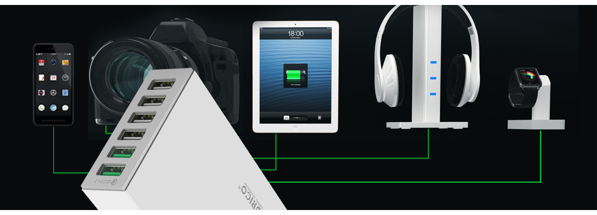 為了實現更智能的充電操作,ORICO QSL采用電流控制和管理模式,配備USB智能充電芯片,可自動識別充電設備,智能匹配合適充電方案。無論您是平板、手機還是移動電源、Ipod、MP4等各種5V設備,Supercharge口都可以自動偵測,給予設備更快的充電電流。