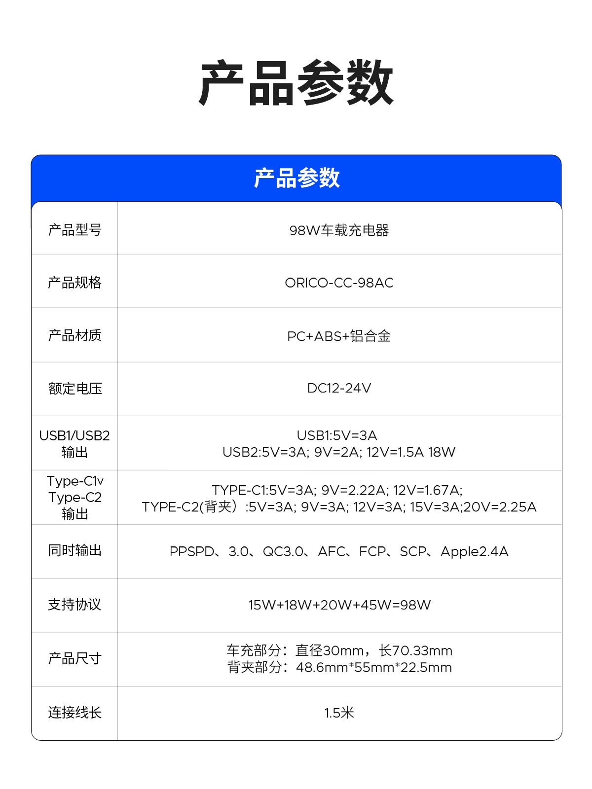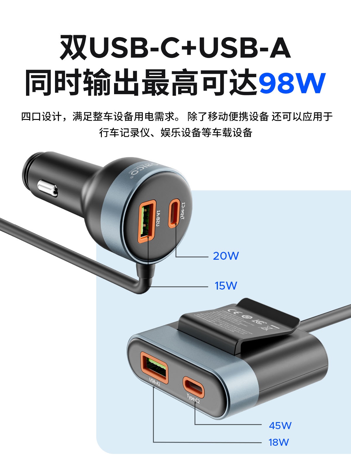 98W分體車載充電器