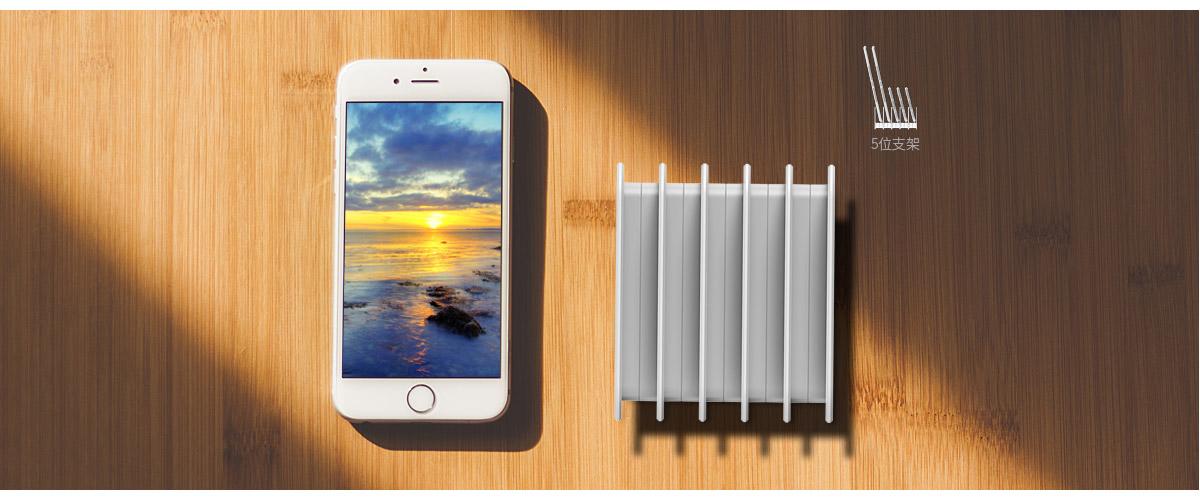 每一個數碼設備均可放置在支架上充電,無需占據過多的桌面面積,簡單方便。任何手機、平板均可輕松放置,讓你的桌面變得整潔簡單