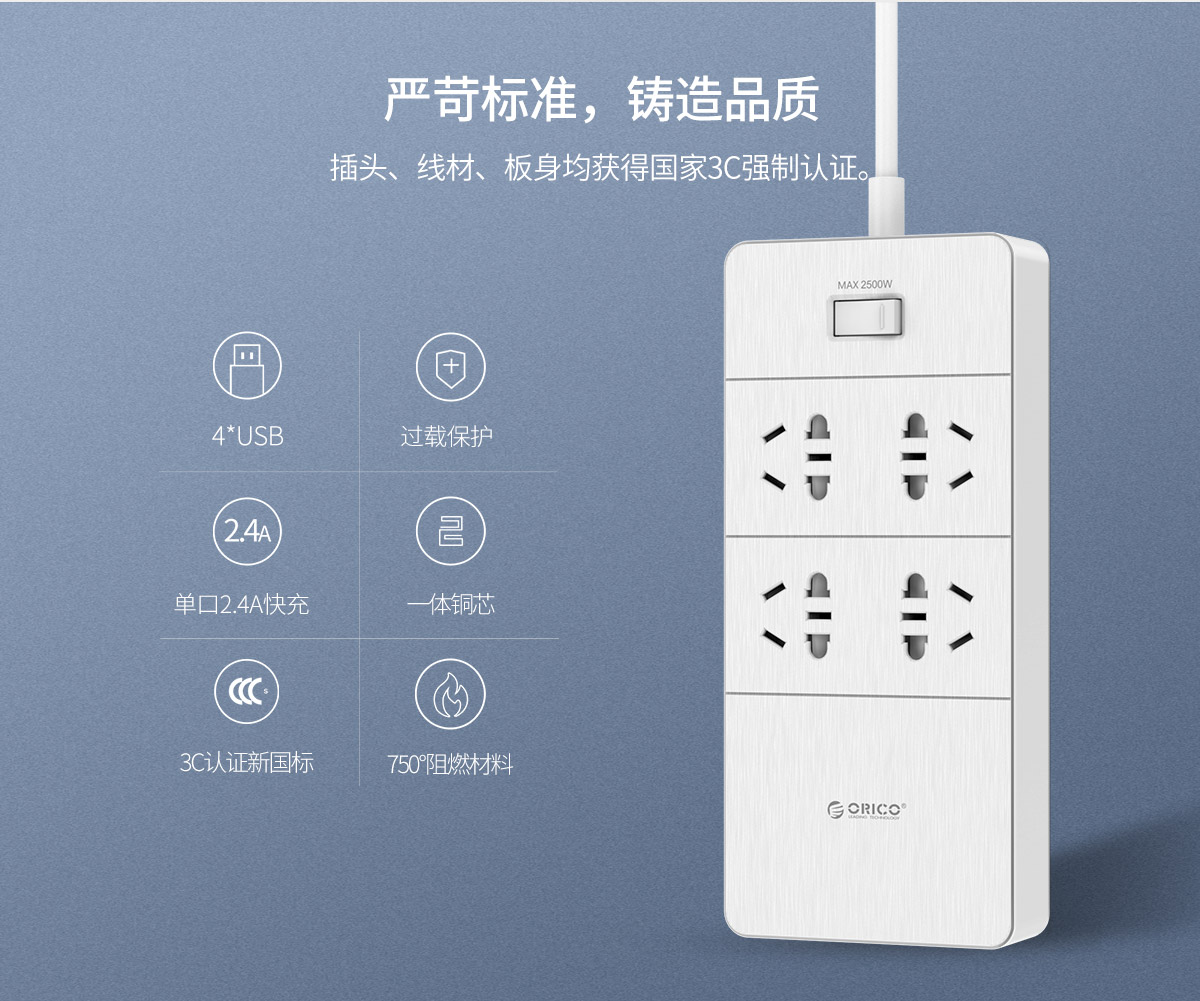 木紋外觀,新國(guó)標(biāo)便攜桌面式排插,辦公智能排插,高溫環(huán)保材料,底座硅膠防滑