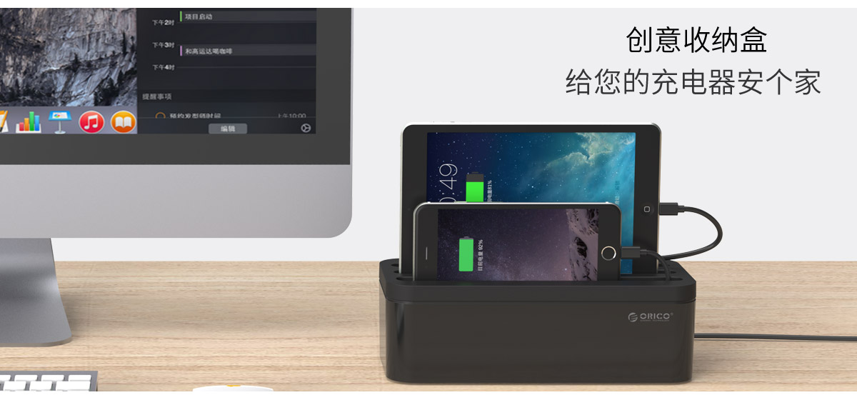 兼容多種桌面充電器。采用科學(xué)的凹槽設(shè)計,可放置多個設(shè)備,支持手機(jī),平板(視平板大小而定)