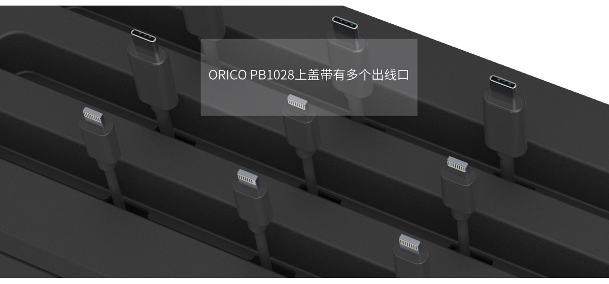 ORICO PB1028上蓋帶有多個出線口,采用分離式設(shè)計,更便于收納線材,輕松替您解決這些煩惱還你一個整潔的桌面。