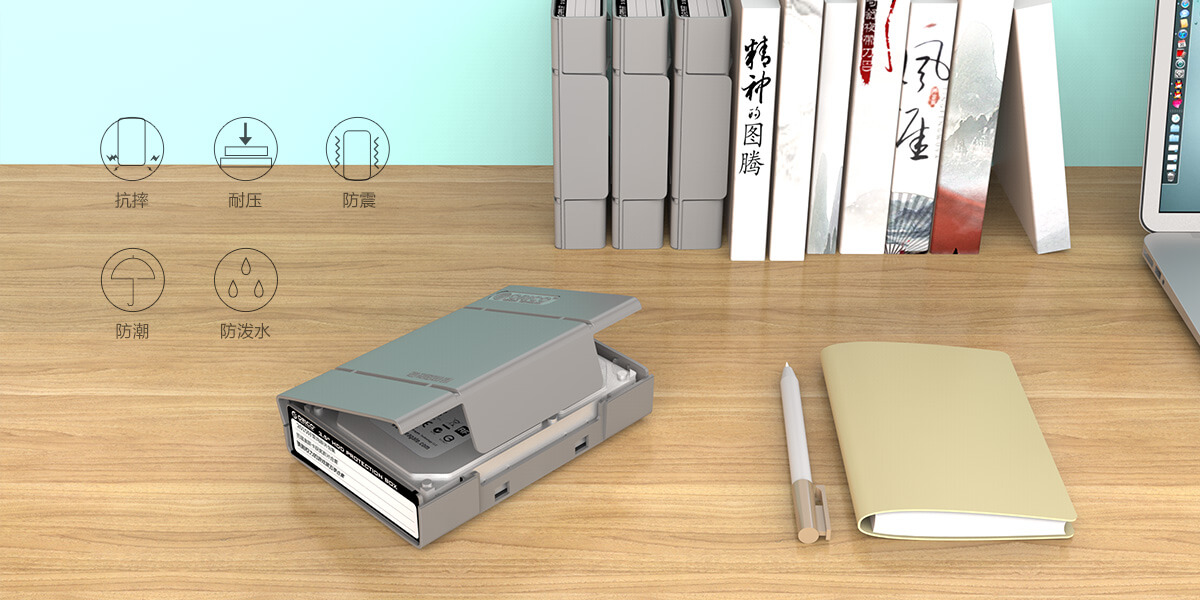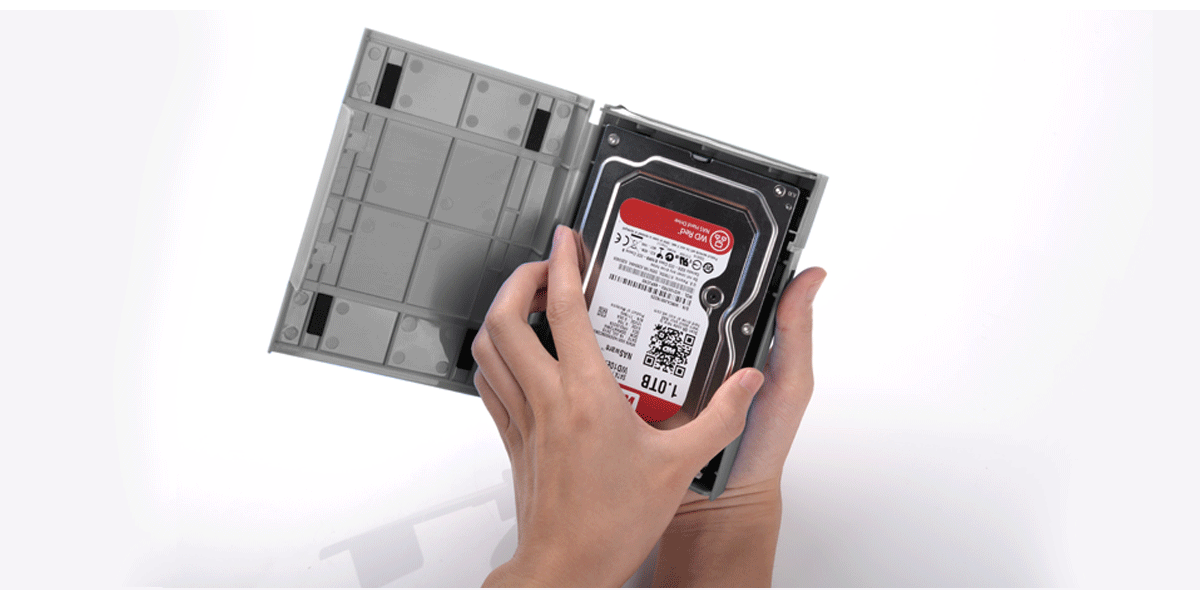 不需要工具拆解,不需要學習教程,免工具密封卡扣式設計,您只需要輕輕開啟卡扣,即可輕松植入3.5寸硬盤,一開一合,簡單的操作讓收納和保護都變得那么舒心。