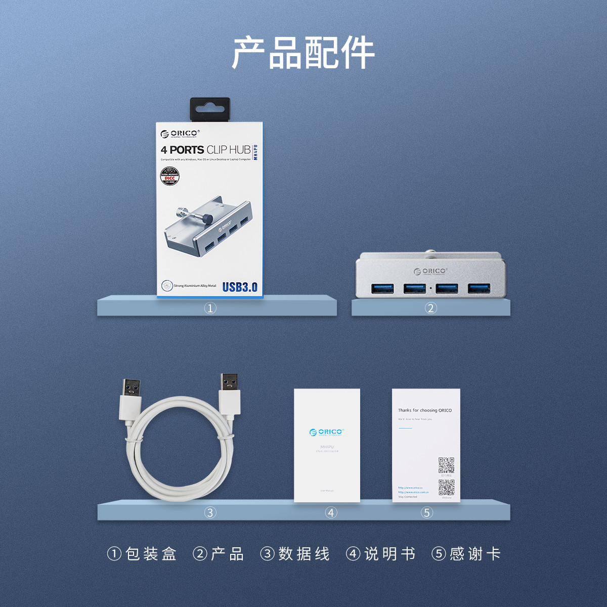 4口USB擴展 分離式設計 線長一米 藍色LED內透指示燈