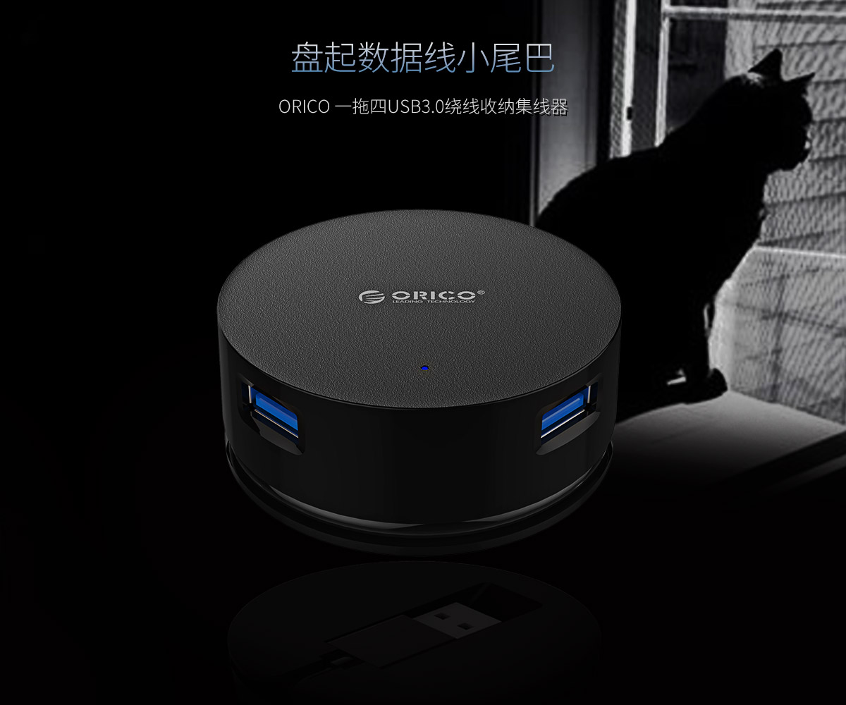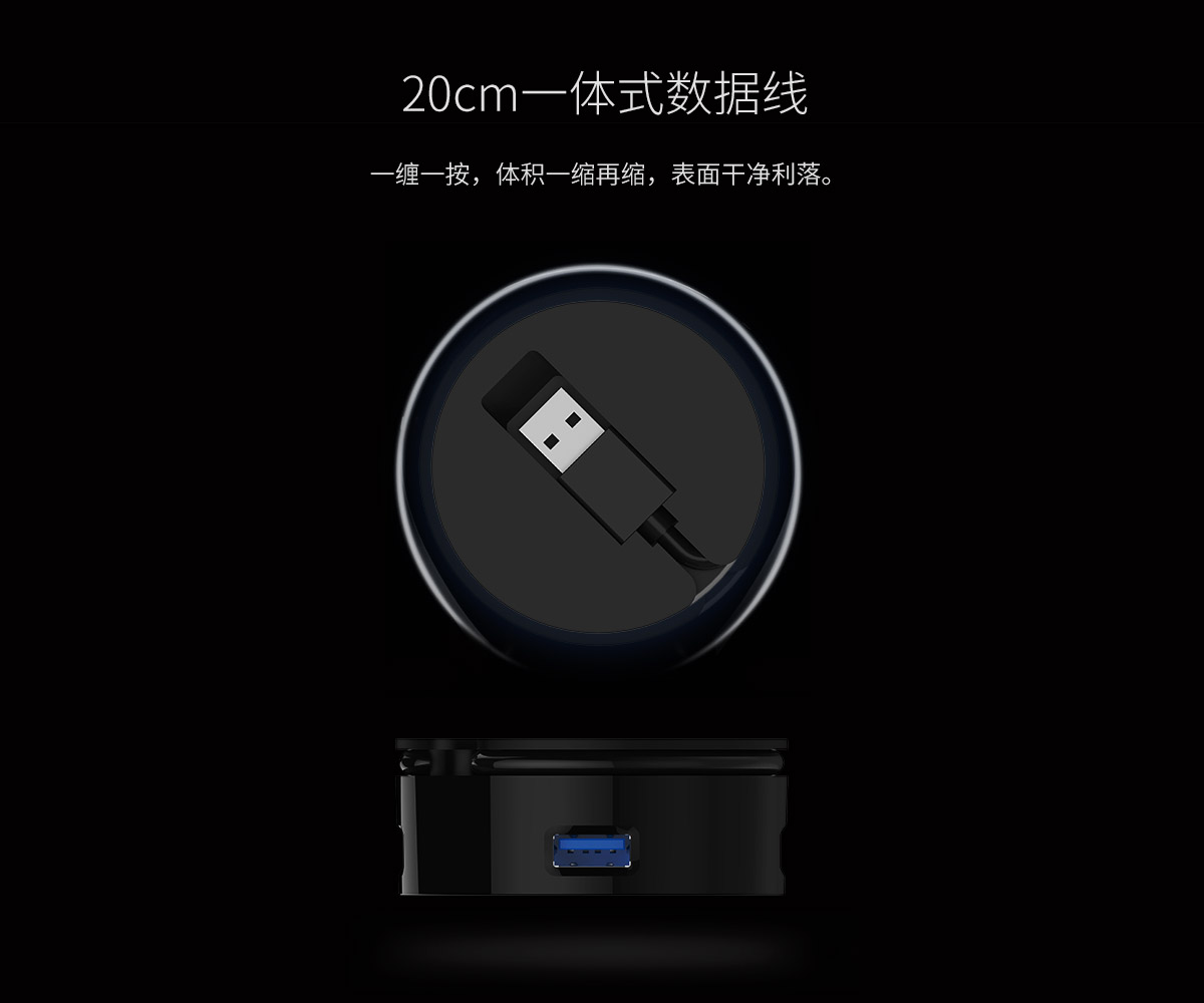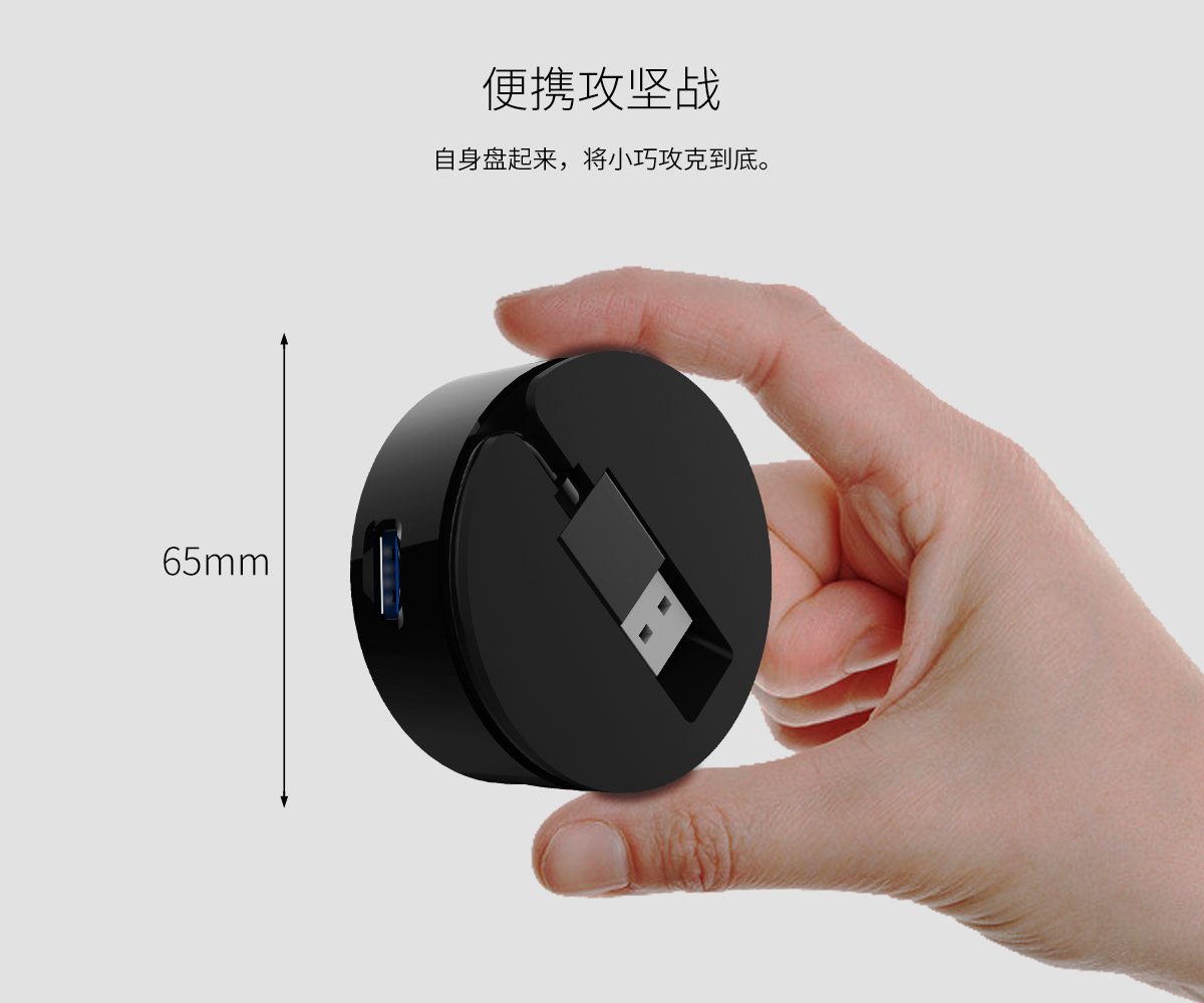 繞線收納集線器 4口USB3.0擴展 一體式數據線 圓形外觀