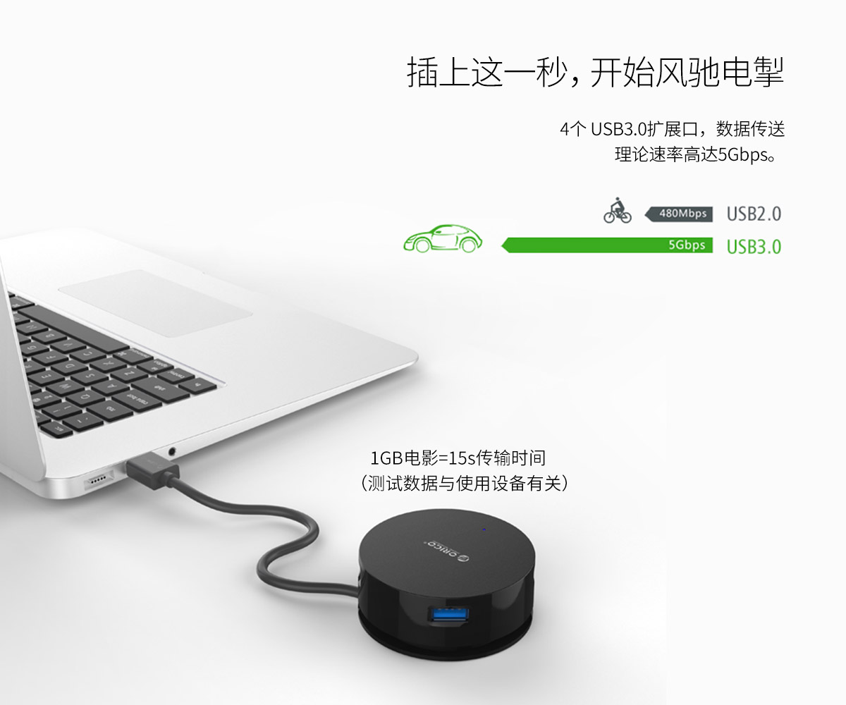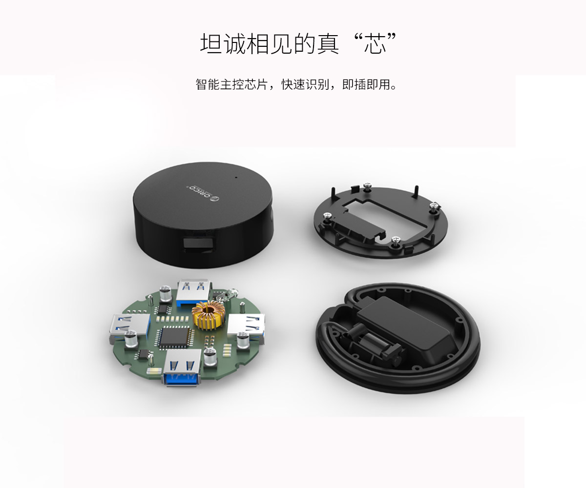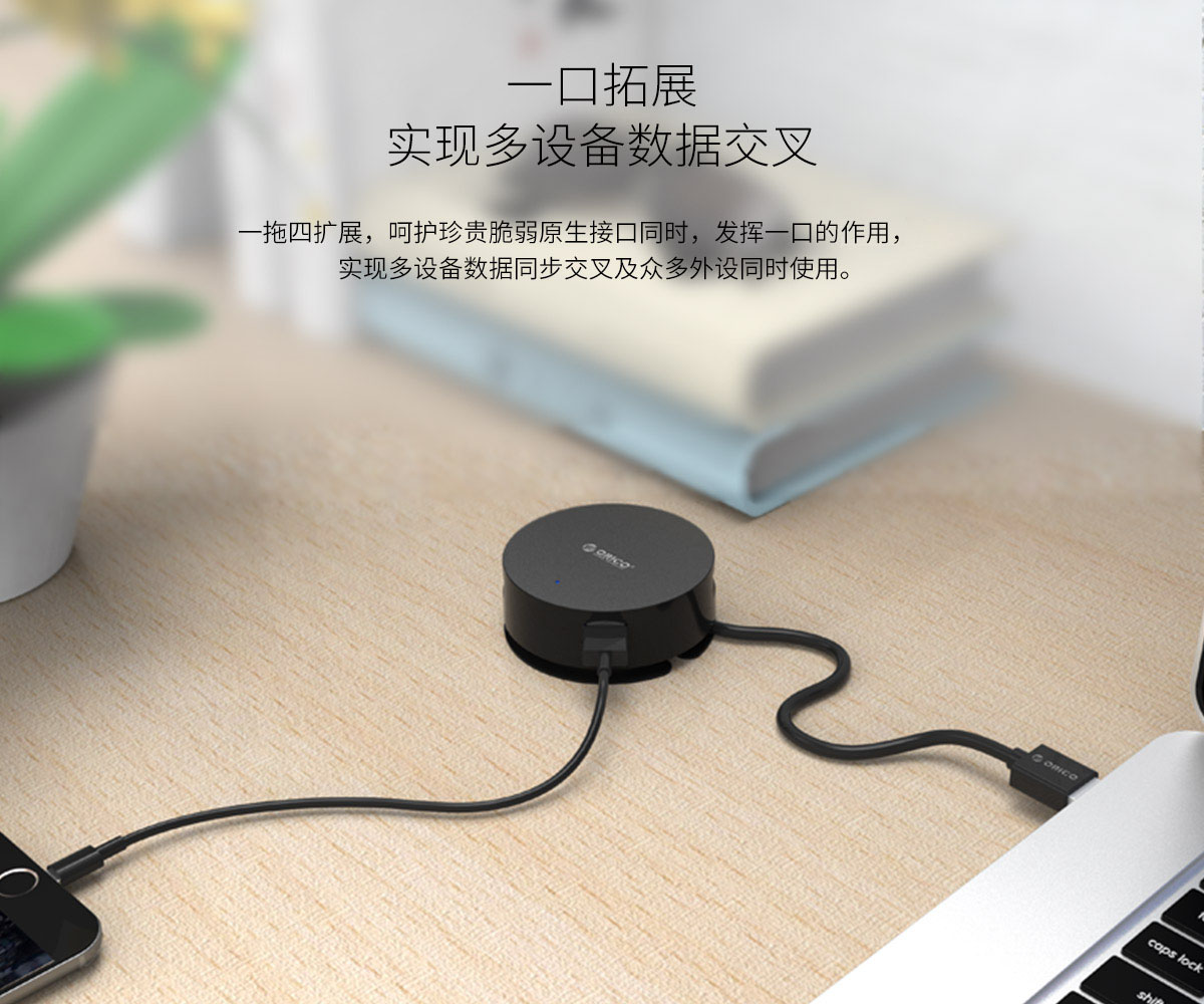 繞線收納集線器 4口USB3.0擴展 一體式數據線 圓形外觀
