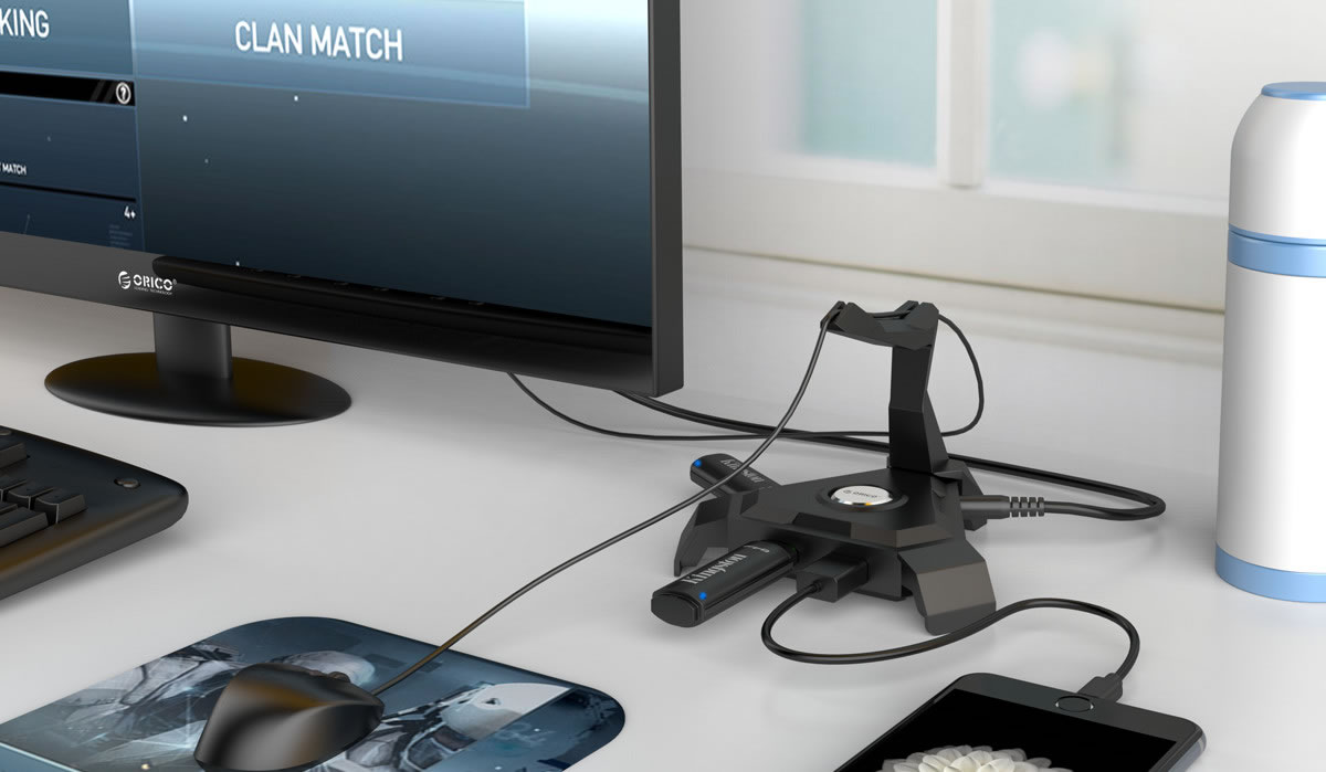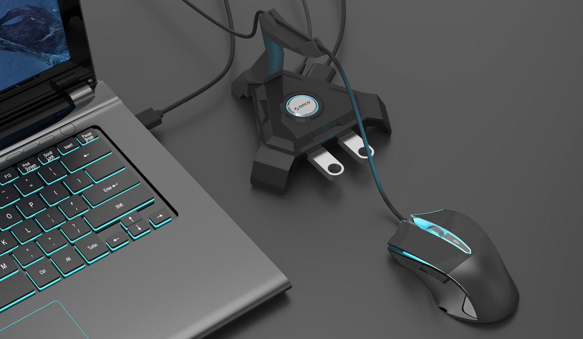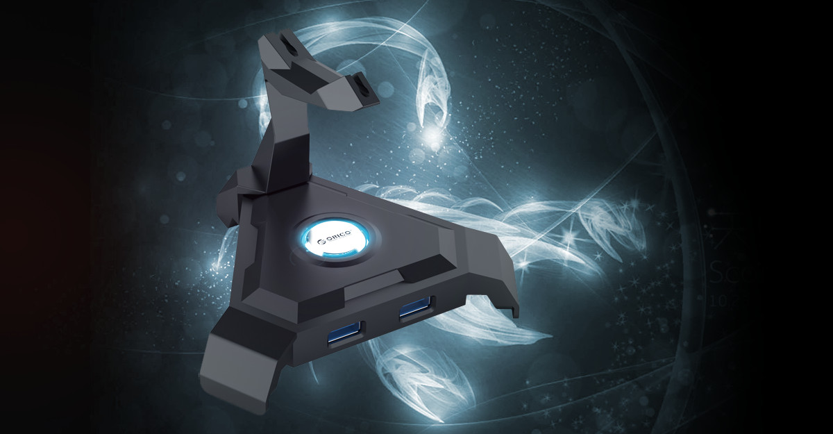 “天蝎”造型,而黑色的搭配更顯得這款固線器炫酷時尚,中間圓形ORCIO LOGO即是電源指示燈也是科技的點綴,微弱的藍色燈光,與游戲玩家或工作狂熱者的溫馨陪伴。