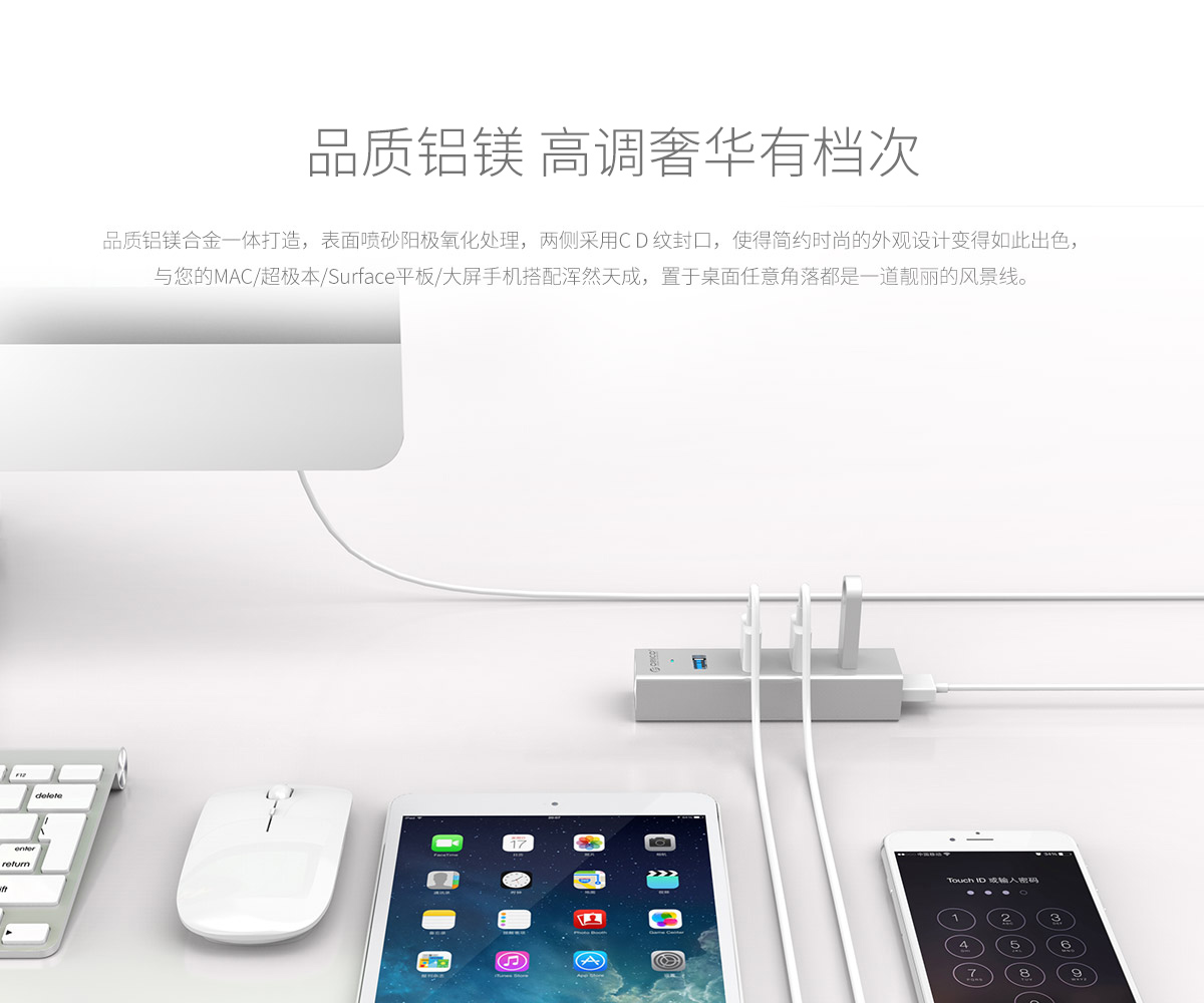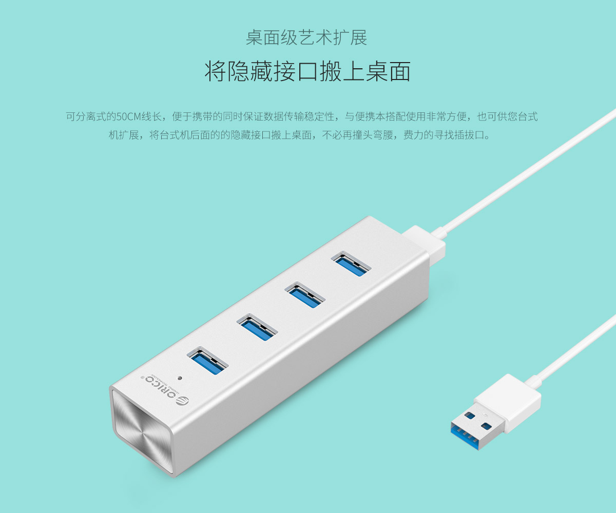 鋁合金4口USB3.0集線器,50cm分離數據線