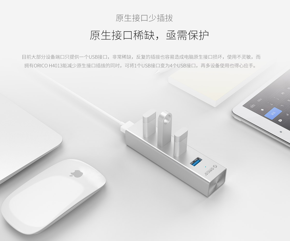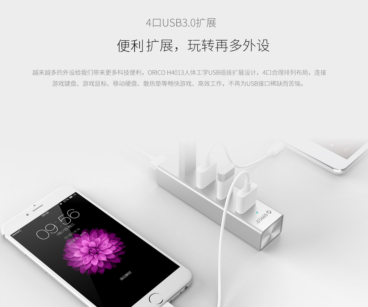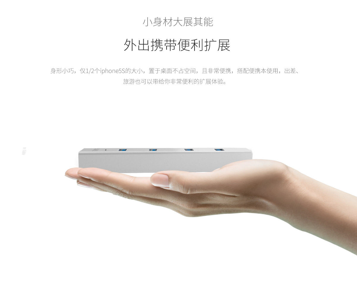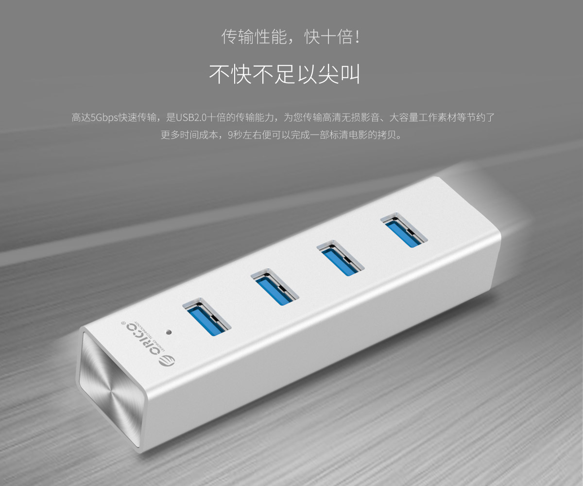 4口USB3.0擴展 分離式設計 藍色LED指示燈 鋁合金打造