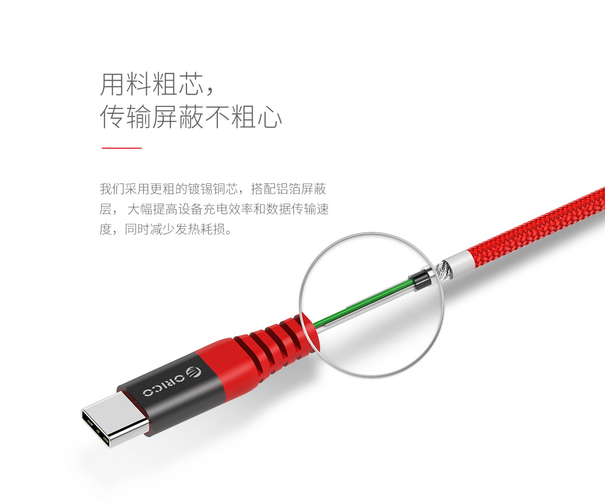 采用更粗的鍍錫銅芯,搭配鋁箔屏蔽層,大幅提高設備充電效率和數據傳輸速度