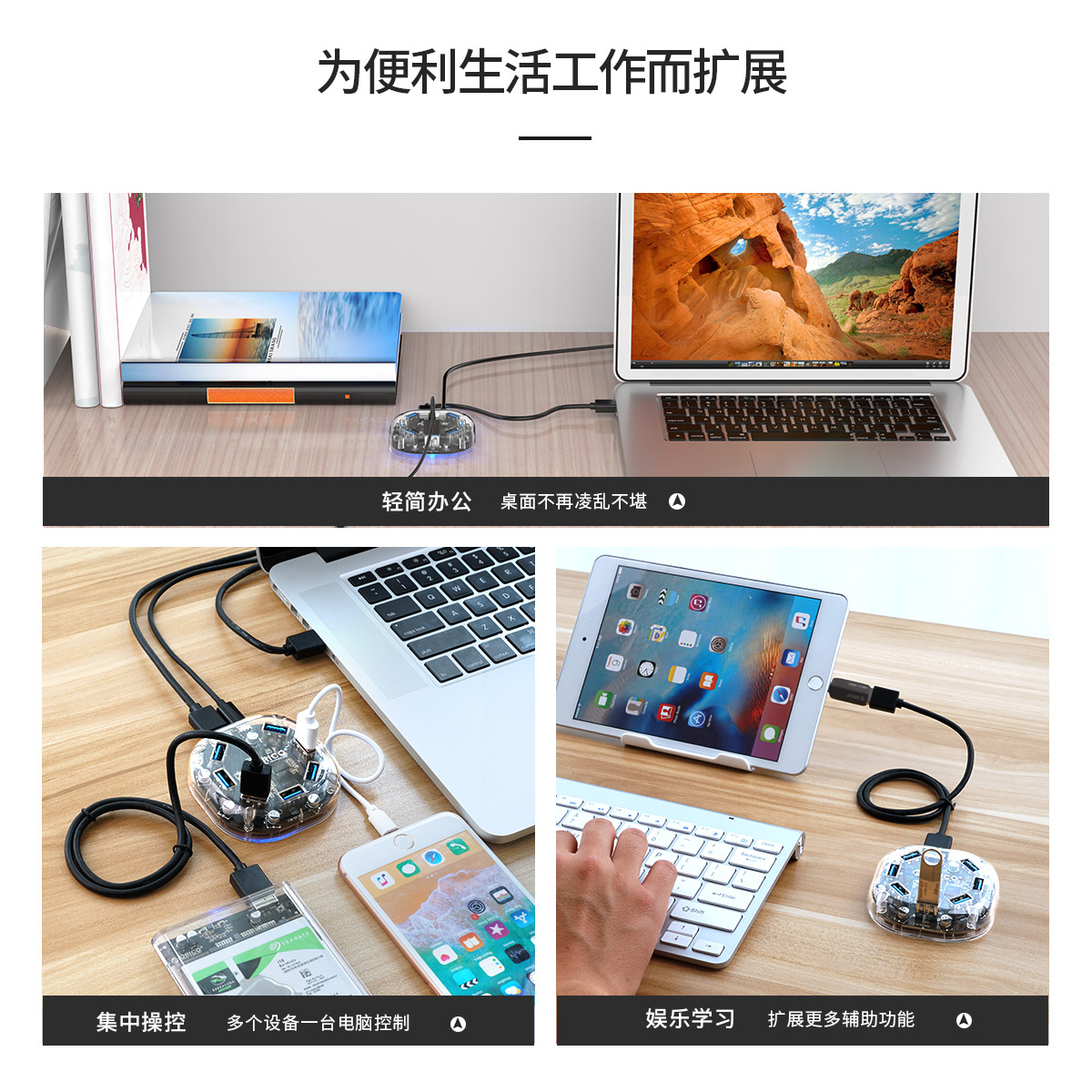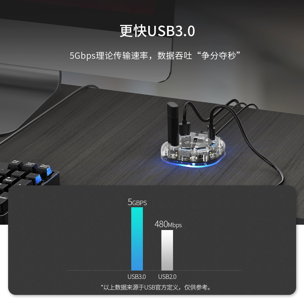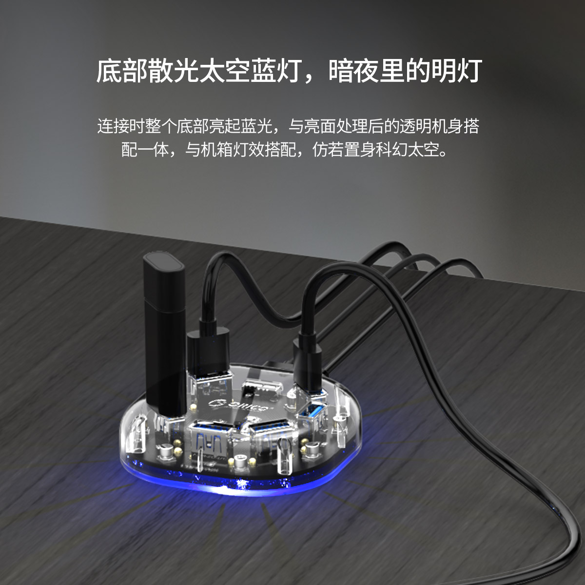 透明系列集線器 內(nèi)透藍(lán)光指示燈 立式插拔設(shè)計 小巧便捷