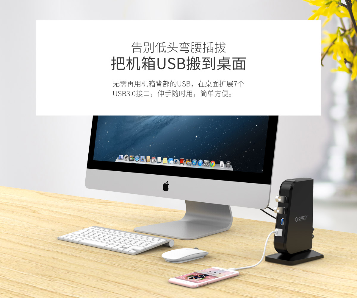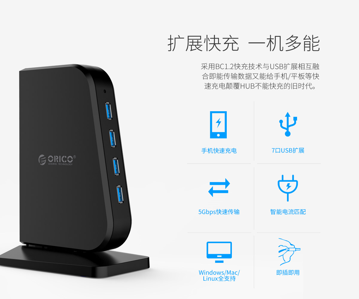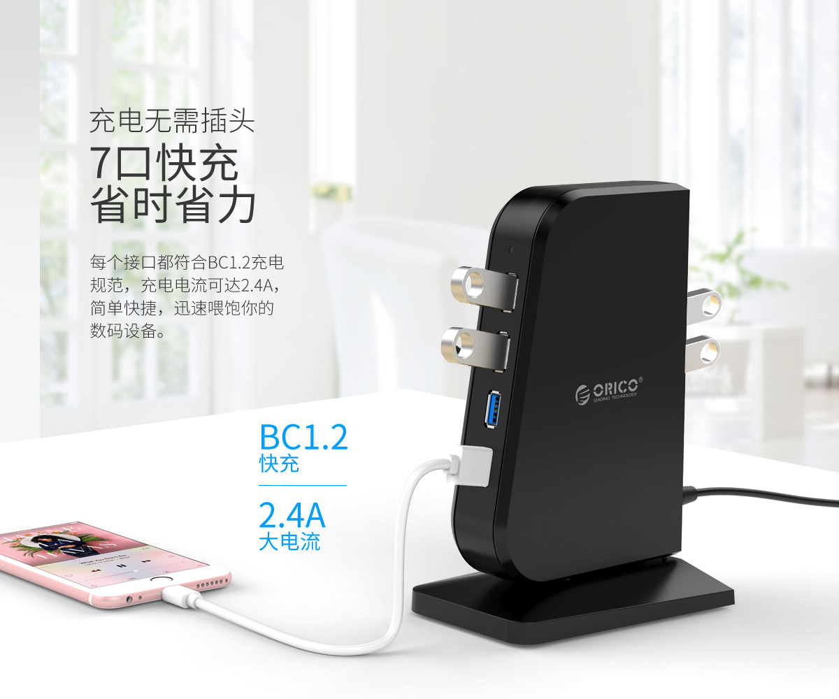 7口USB3.0集線器 立式設(shè)計(jì) LED藍(lán)色指示燈 均支持BC1.2快速充電