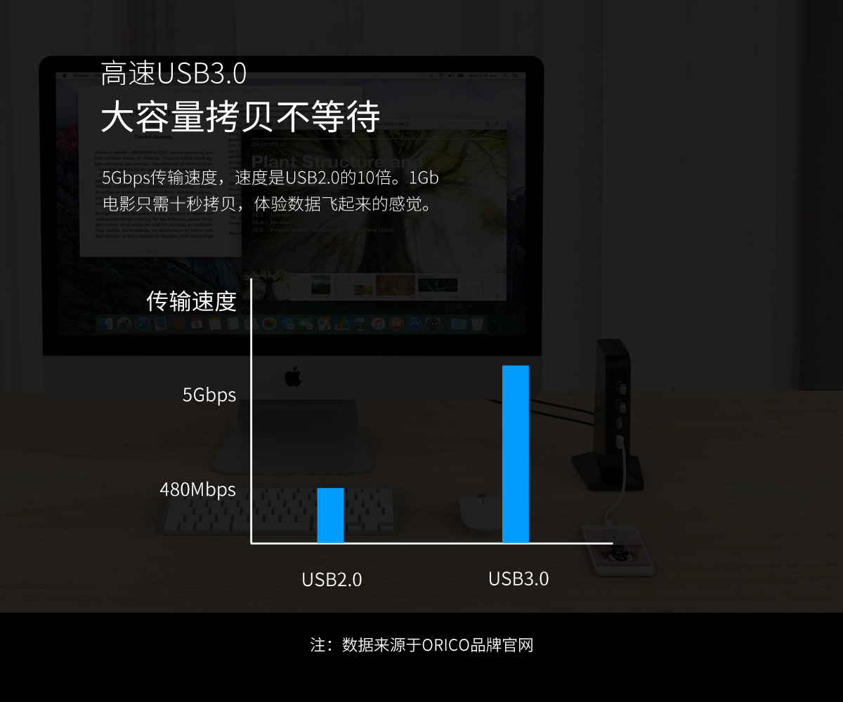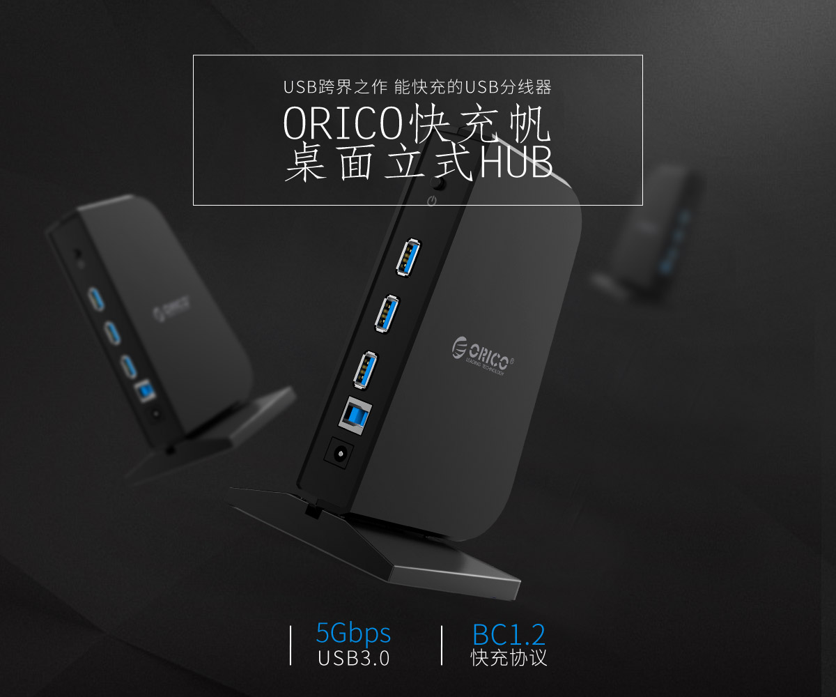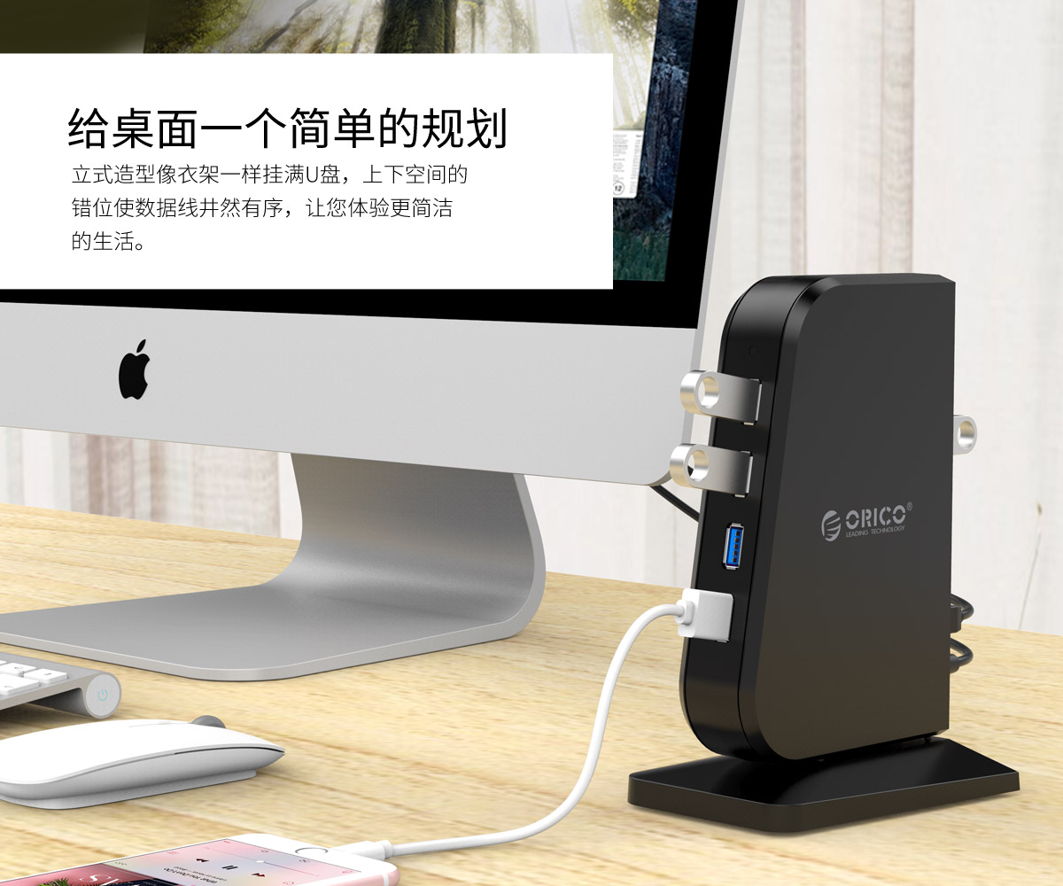 7口USB3.0集線器 立式設(shè)計(jì) LED藍(lán)色指示燈 均支持BC1.2快速充電