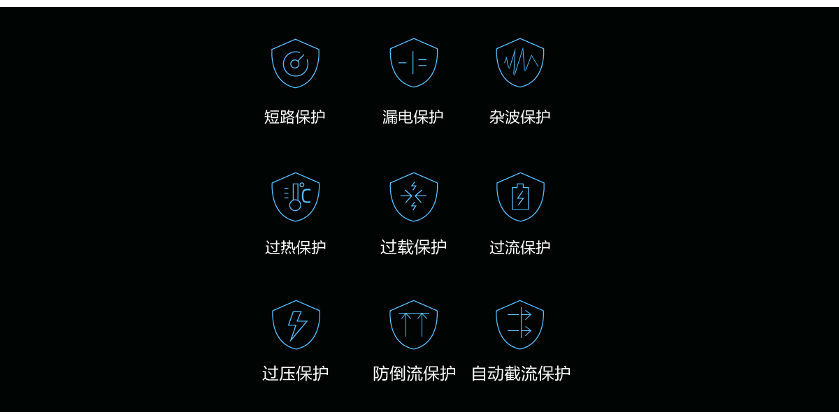 內置了七重標準化保護系統可防過熱、過載、過流、過壓、短路、漏電、雜波問題,讓您使用起來舒適安心。