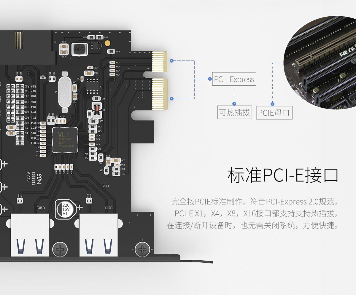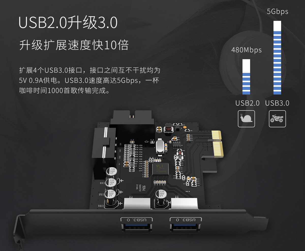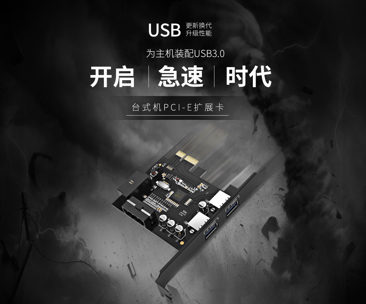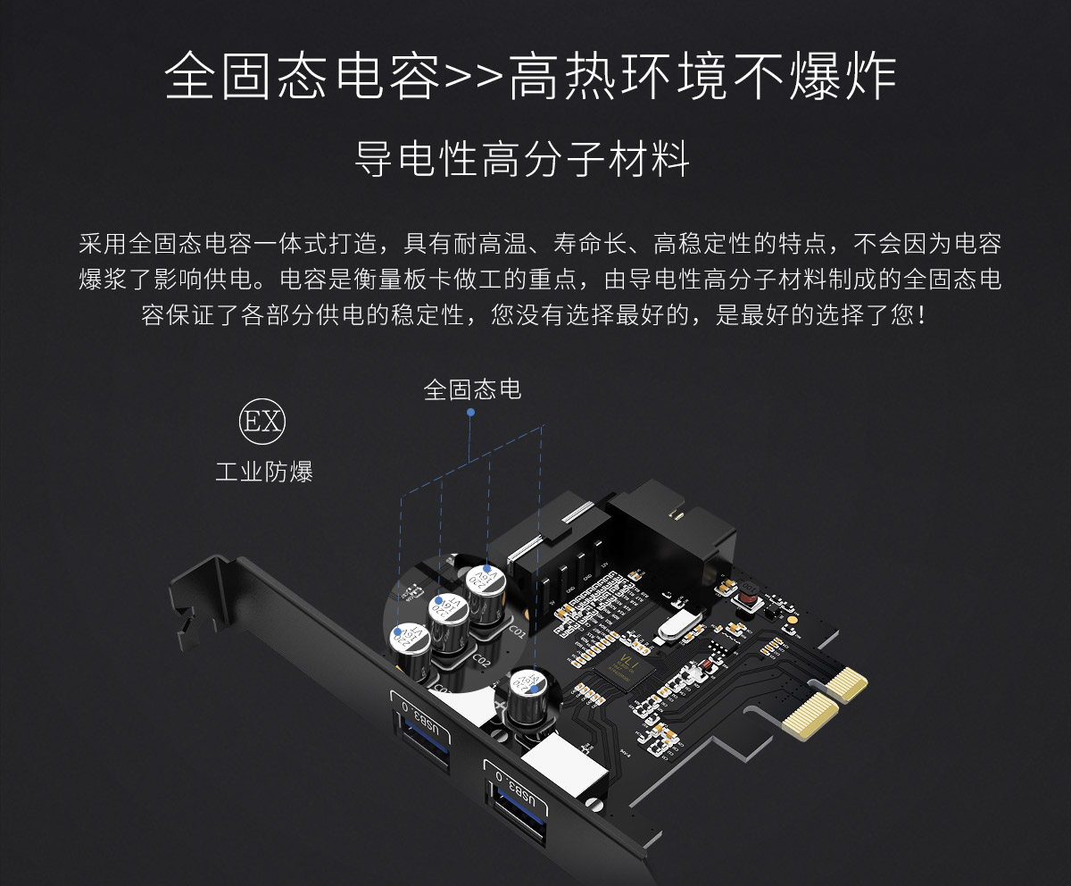 2口USB3.0 PCI-E擴(kuò)展卡,全固態(tài)電容