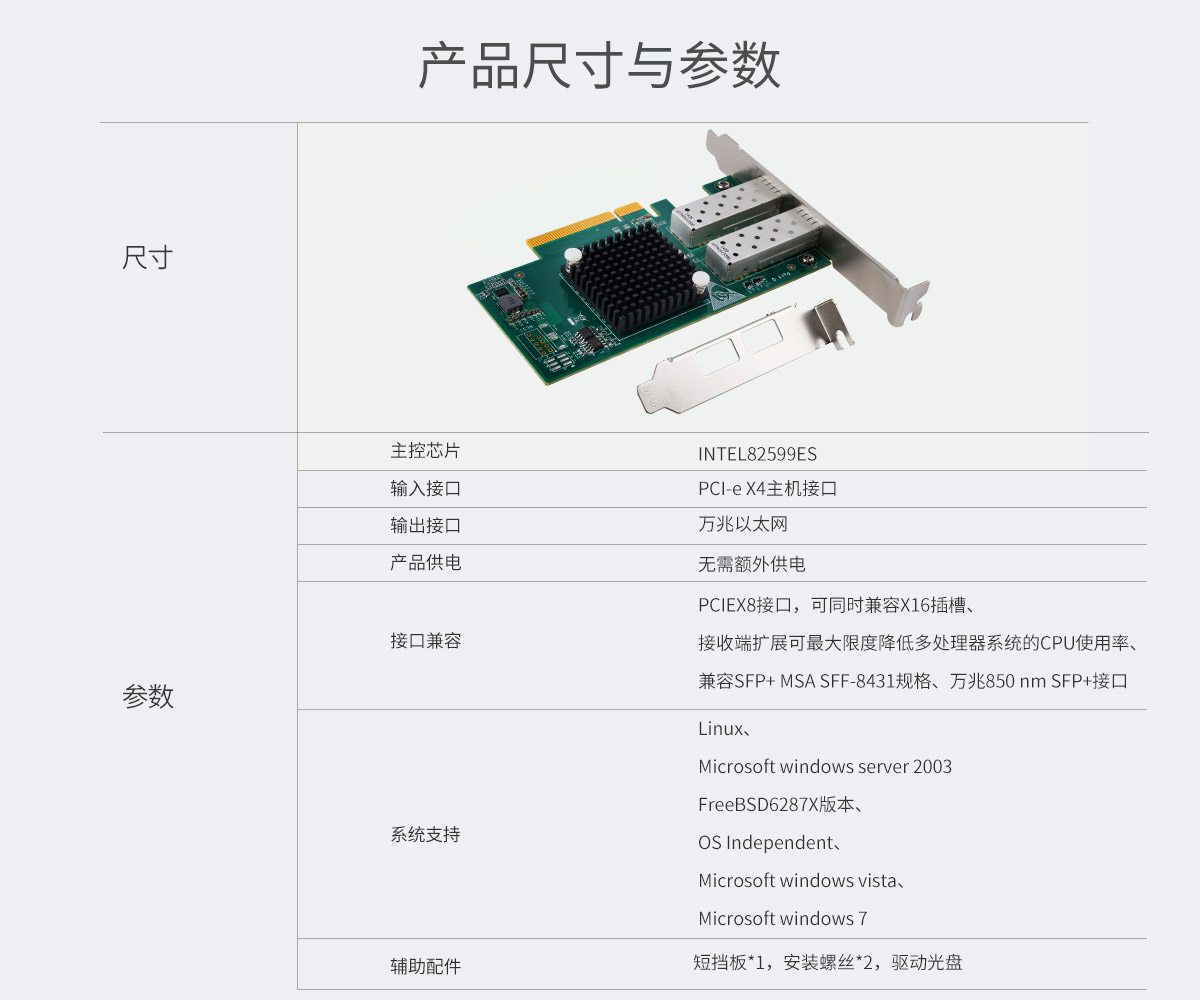 2口萬(wàn)兆網(wǎng)卡PCI-E擴(kuò)展卡,PCIEX8接口兼容X16插槽