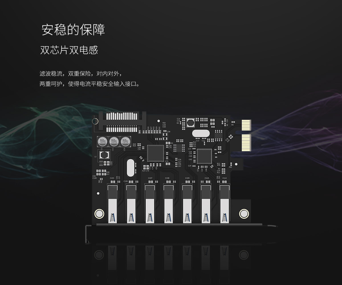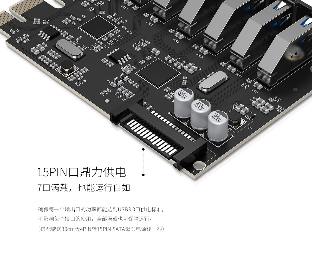 7口USB3.0 PCI-E臺式機箱擴展卡