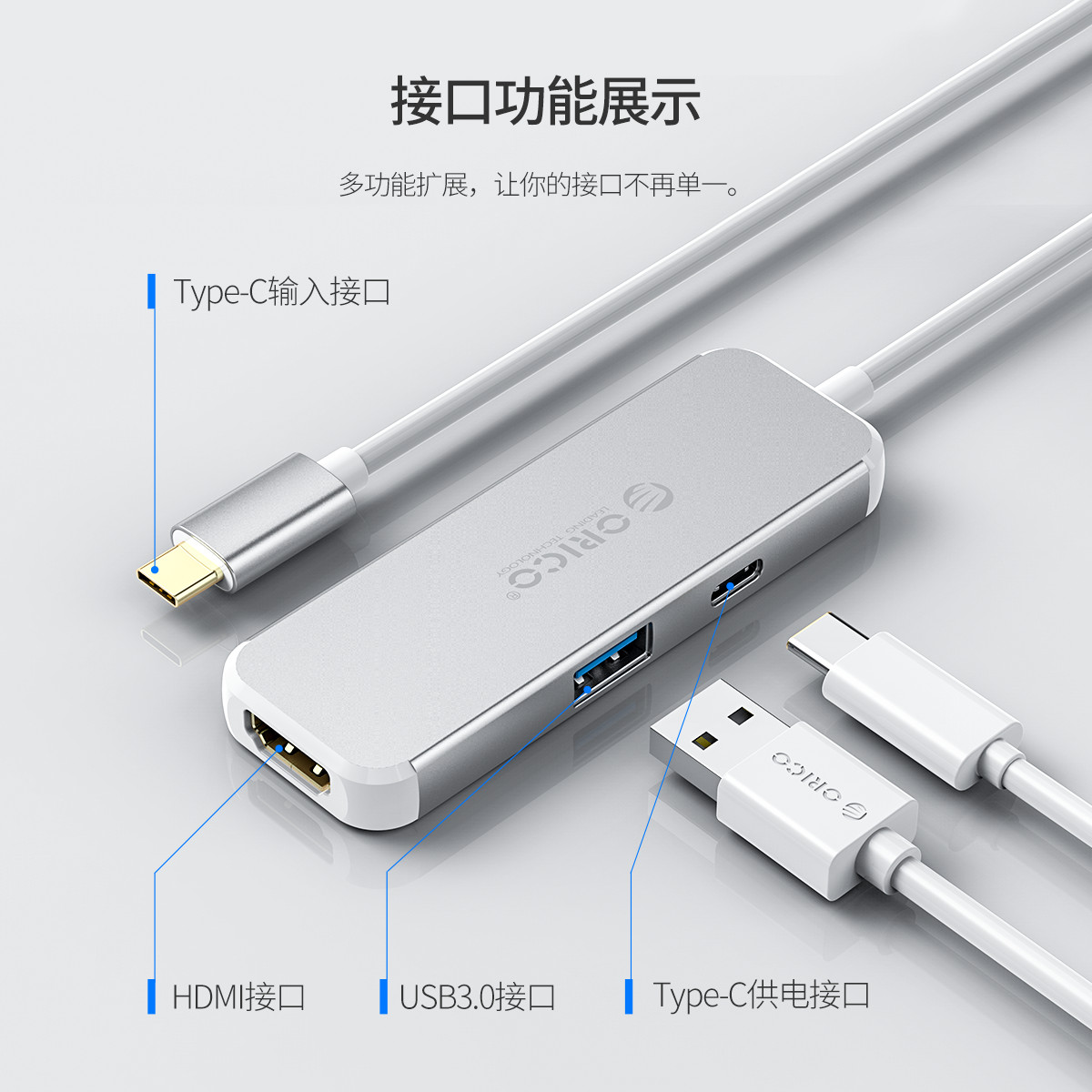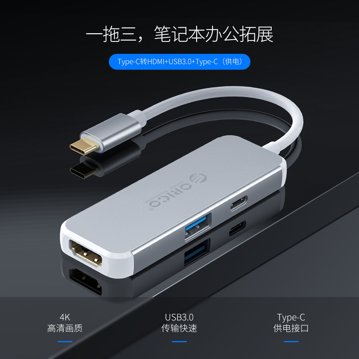 Type-C轉(zhuǎn)HDMI/USB3.0/Type-C(供電)擴(kuò)展塢
