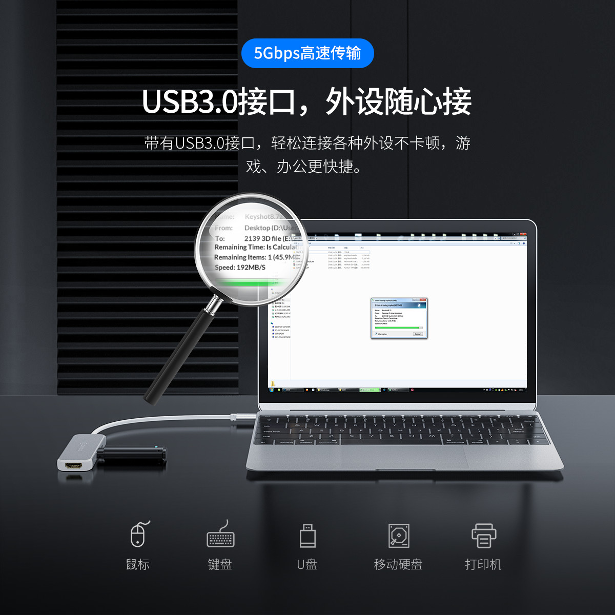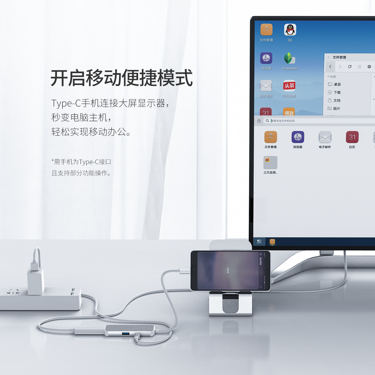 Type-C轉(zhuǎn)HDMI/USB3.0轉(zhuǎn)接線,Type-C供電接口。