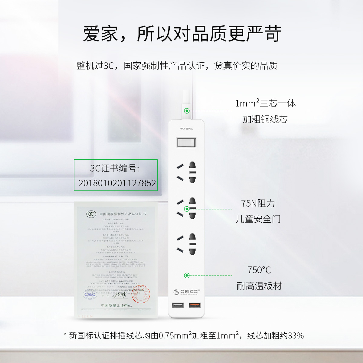 新國標(biāo)AC口*3, USB口*1,QC3.0*1,1.5米電源線